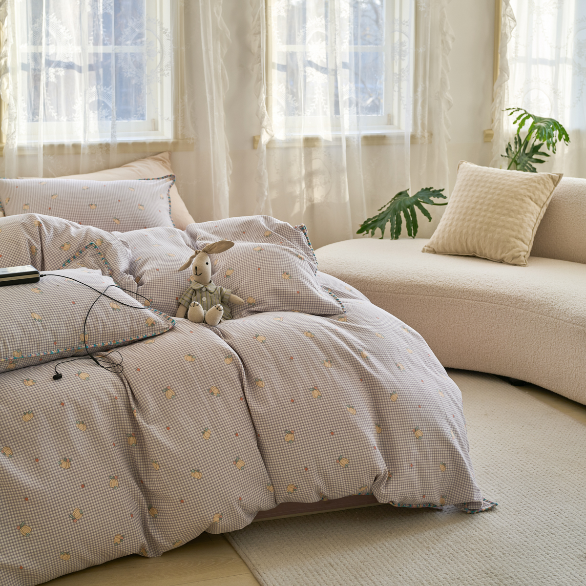 (总)洋铭区 2022新款双色棋盘格四件套,庄园橙格,庄园粉格,庄园咖格,庄园蓝格