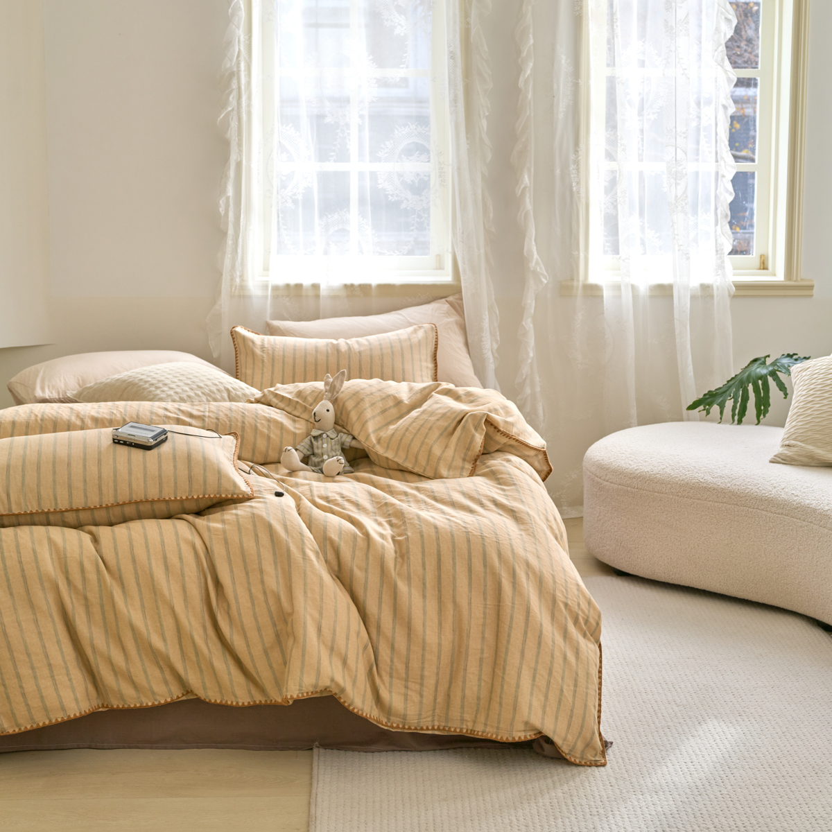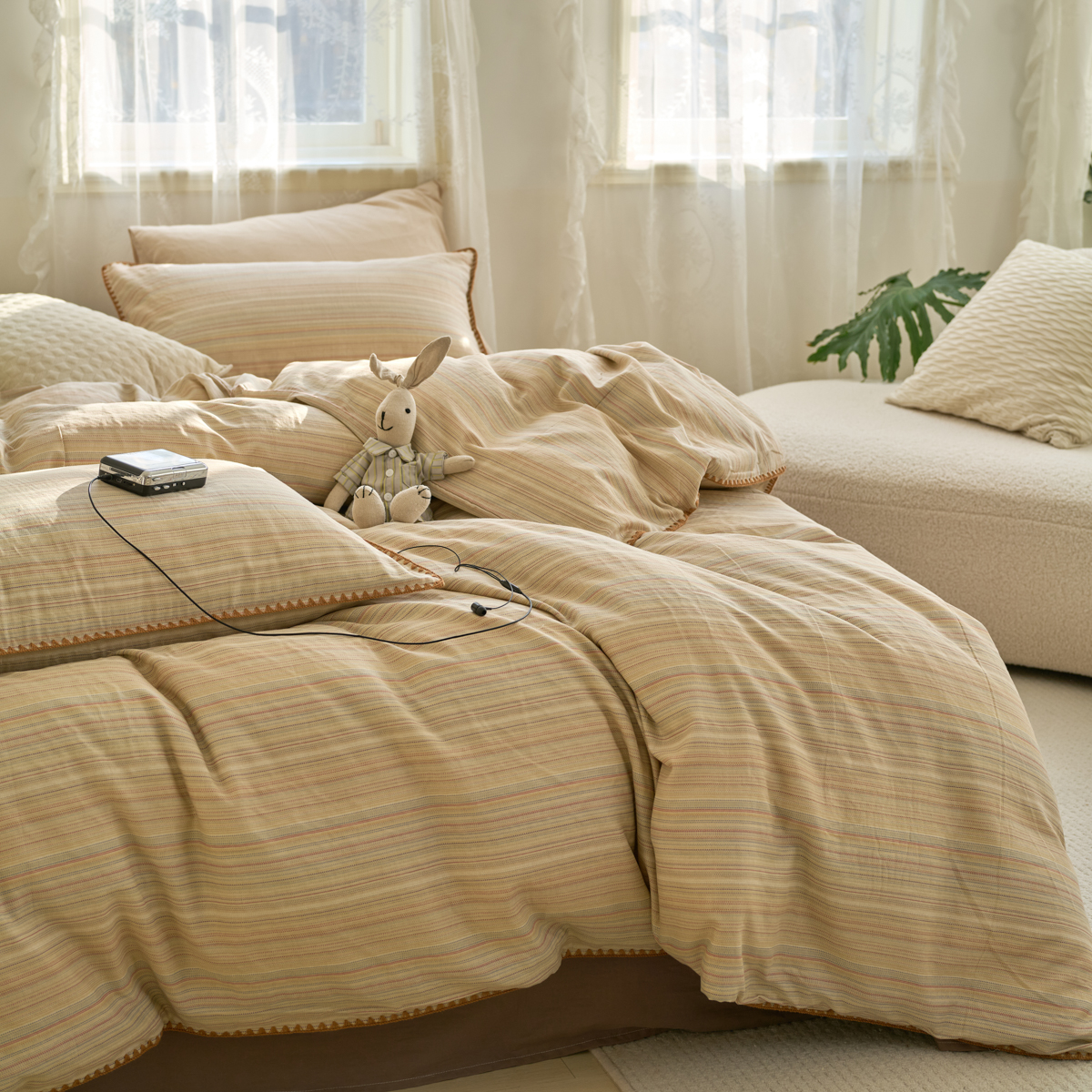 洋铭区(原狠狠爱) 2025新款A类全棉双层纱四件套 优雅棕条