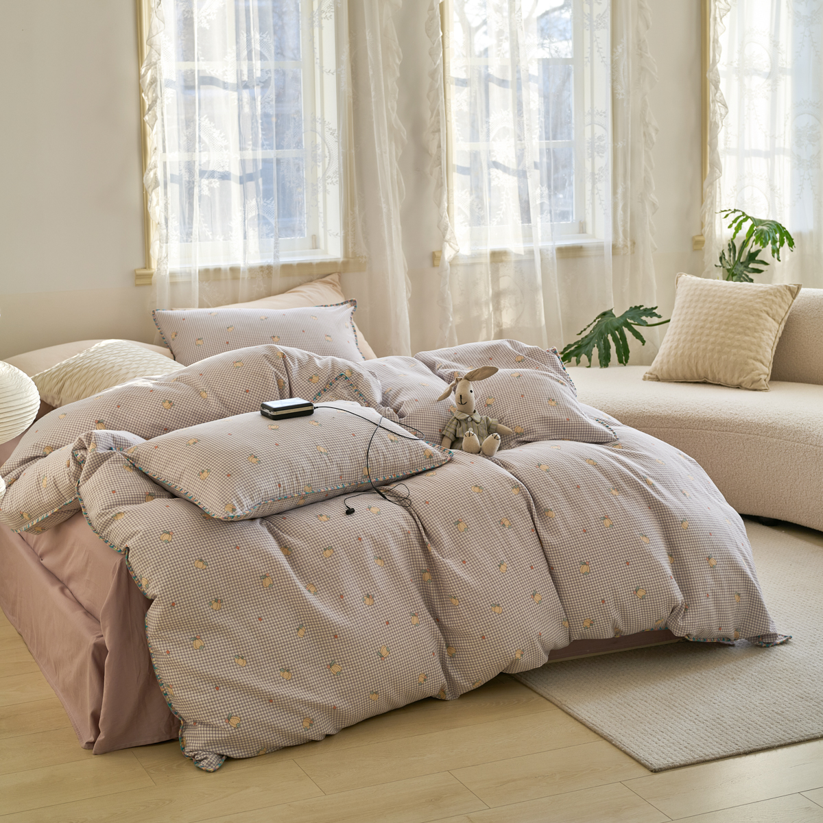 (总)洋铭区(原狠狠爱) 2026新款春季全棉彩边双层纱四件套,爱心宝莉,波斯小懒狗,繁花兔兔,格格小熊,海蓝小木马,红格小马,红枣小兔,花朵兔兔,焦糖小熊,兰花香,绿芽小马,萌宠小分队,奶茶蝴蝶结,奶糕熊熊,汽车派对,桃桃粉花,甜果小象,图图小狮子,幸运小可爱,熊猫嘟嘟,遇见粉花,月光宝宝