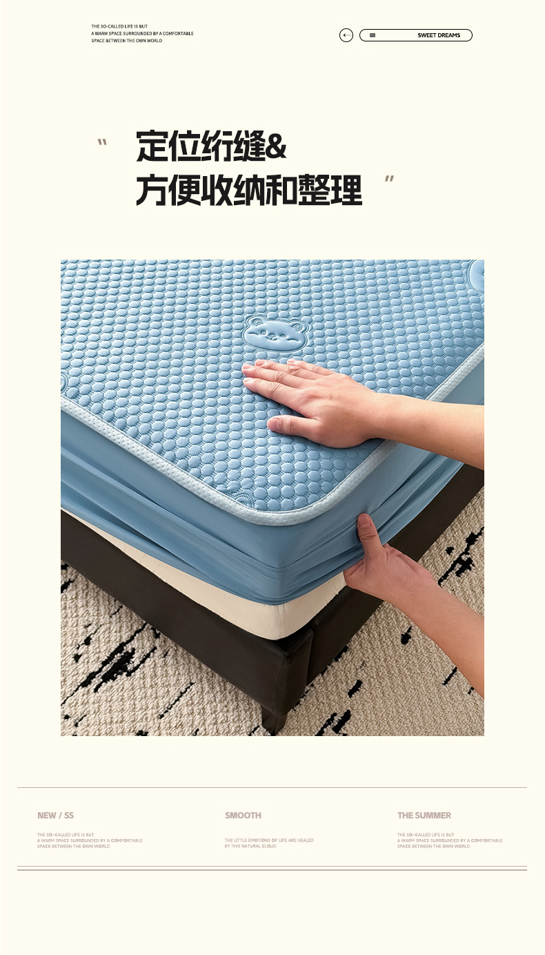 • 91家纺网 家纺一手货源 找家纺 卡罗兰 2025新款豆豆凉席小冰熊床裙床笠款 水绿-床笠