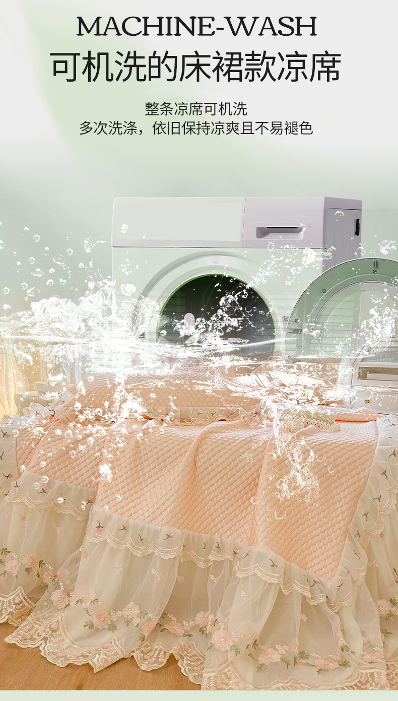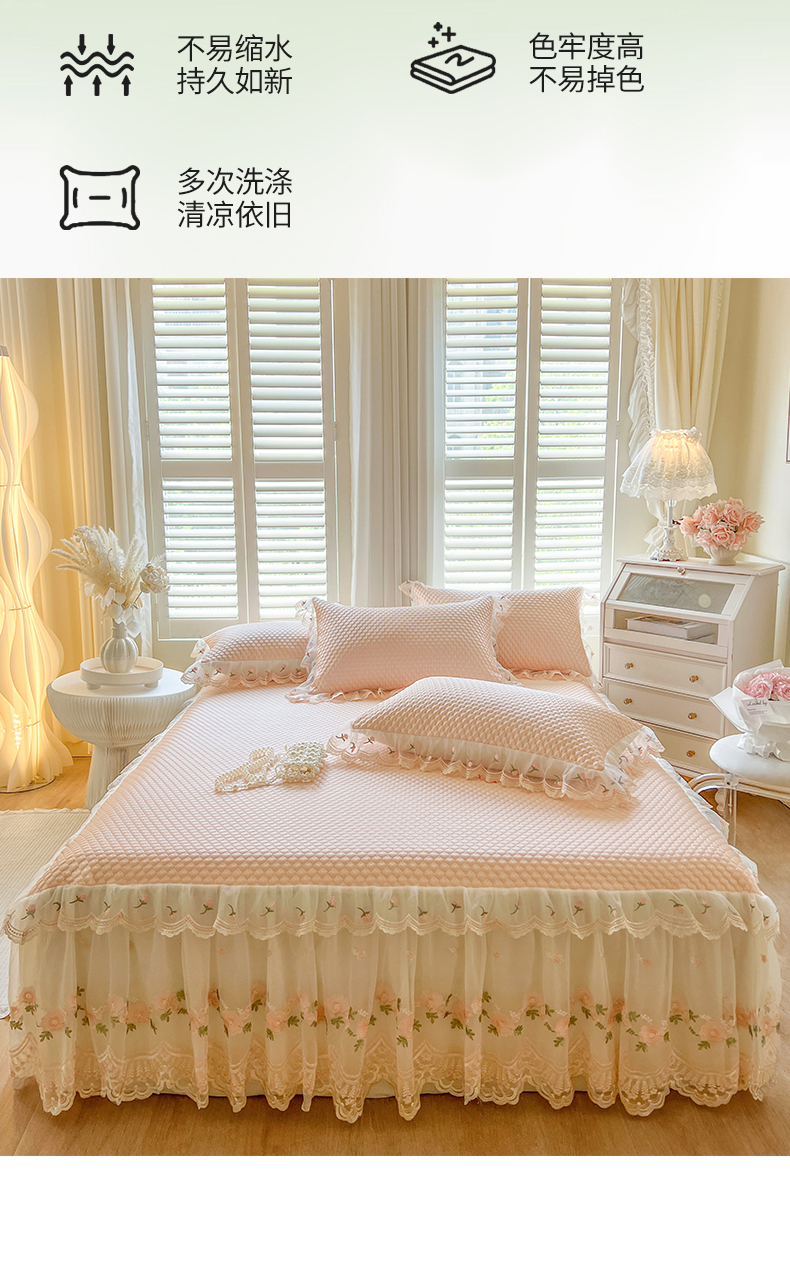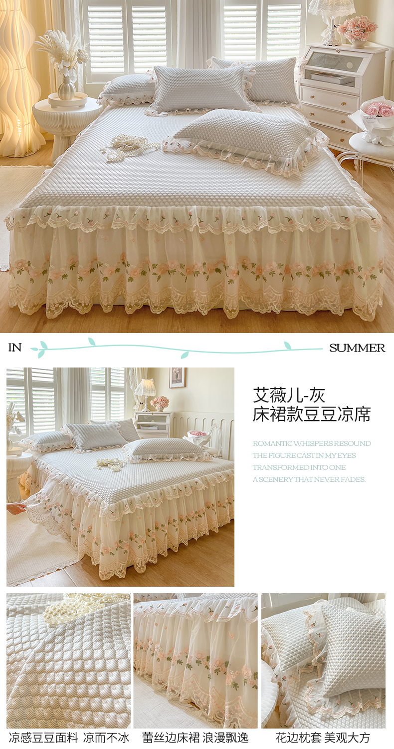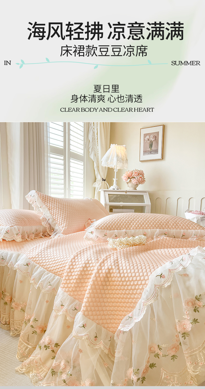 商品名称:网红馆(ck家纺) 2025新款凉感蕾丝花边床裙款豆豆席凉席-艾薇儿 艾薇儿-玉