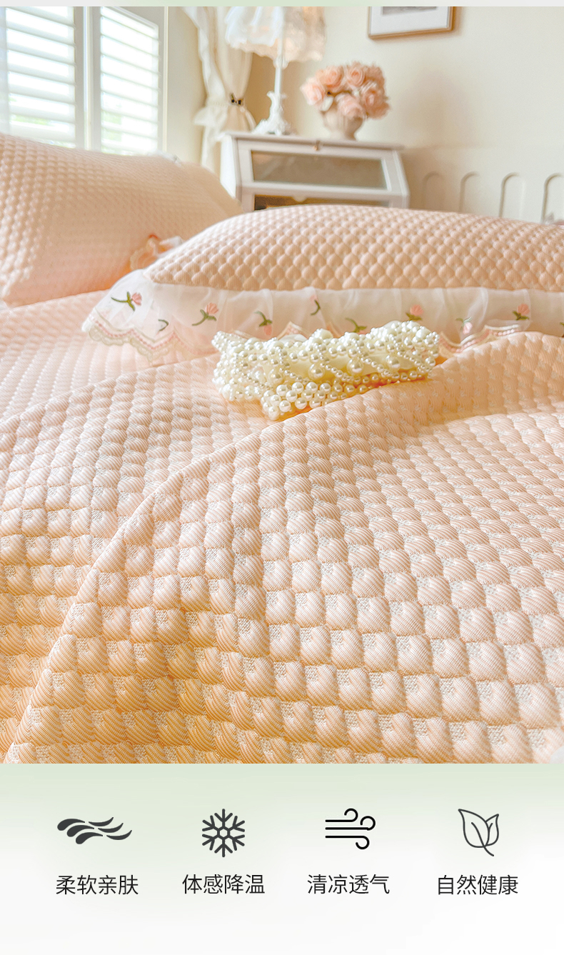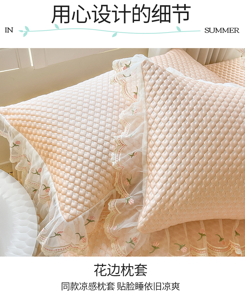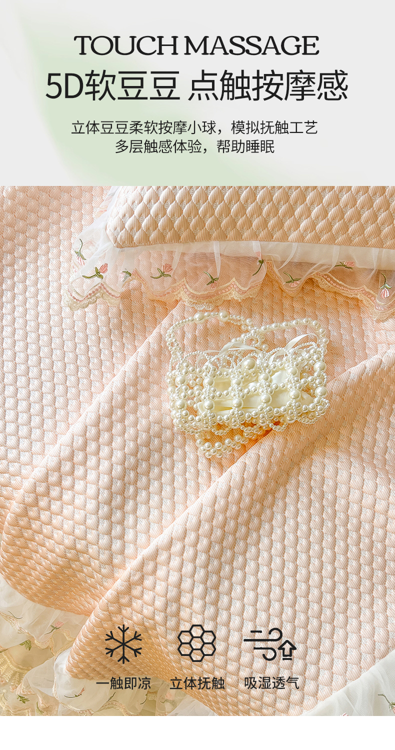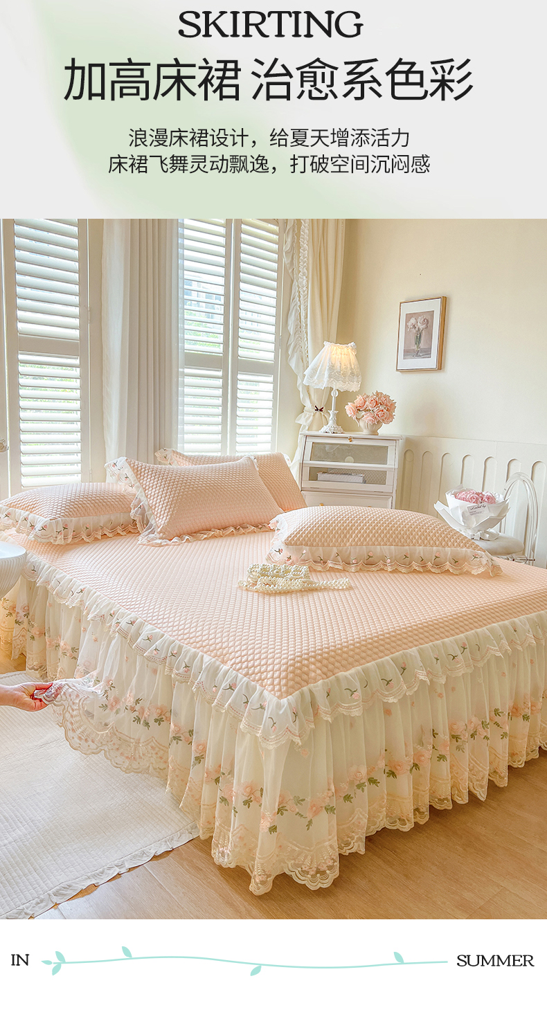 商品名称:网红馆(ck家纺) 2025新款凉感蕾丝花边床裙款豆豆席凉席-艾薇儿 艾薇儿-玉