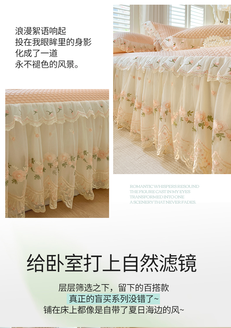 (总)网红馆(ck家纺) 2026新款全棉蕾丝花边床裙款床笠晨暮花间系列,绯红,粉色,麦绿,米色,浅紫,雾蓝