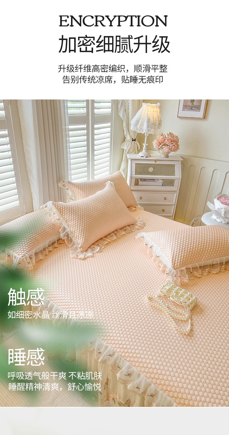 网红馆(ck家纺) 2025新款凉感蕾丝花边床裙款豆豆席凉席-艾薇儿 艾薇儿-玉