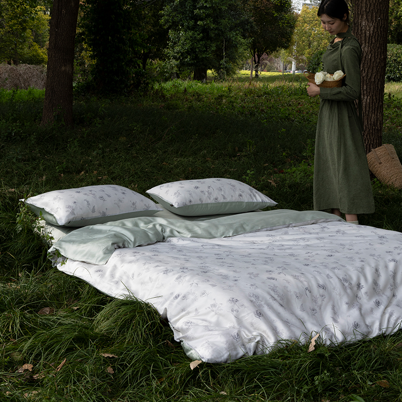 商品名称:禾时 2025新款60S兰精天丝数码印花四件套 慕沙-绿