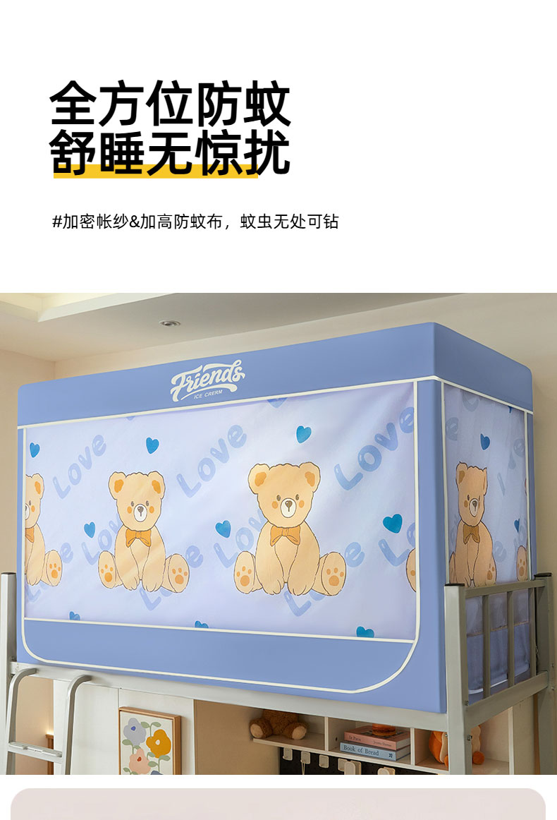爱上家居 2025新款遮光防蚊卡通学生蚊帐 泰迪熊