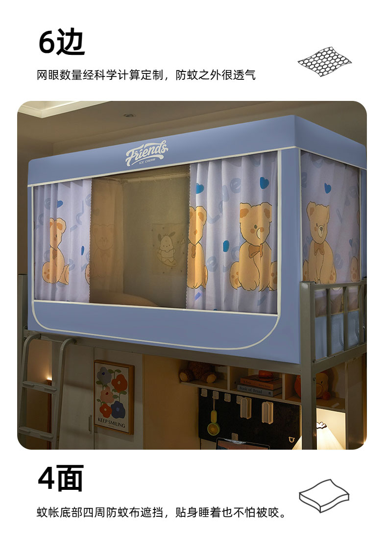 • 91家纺网 家纺一手货源 找家纺 爱上家居 2025新款遮光防蚊卡通学生蚊帐 泰迪熊