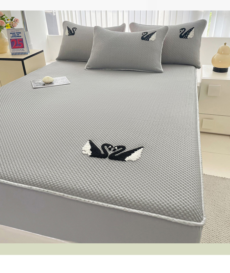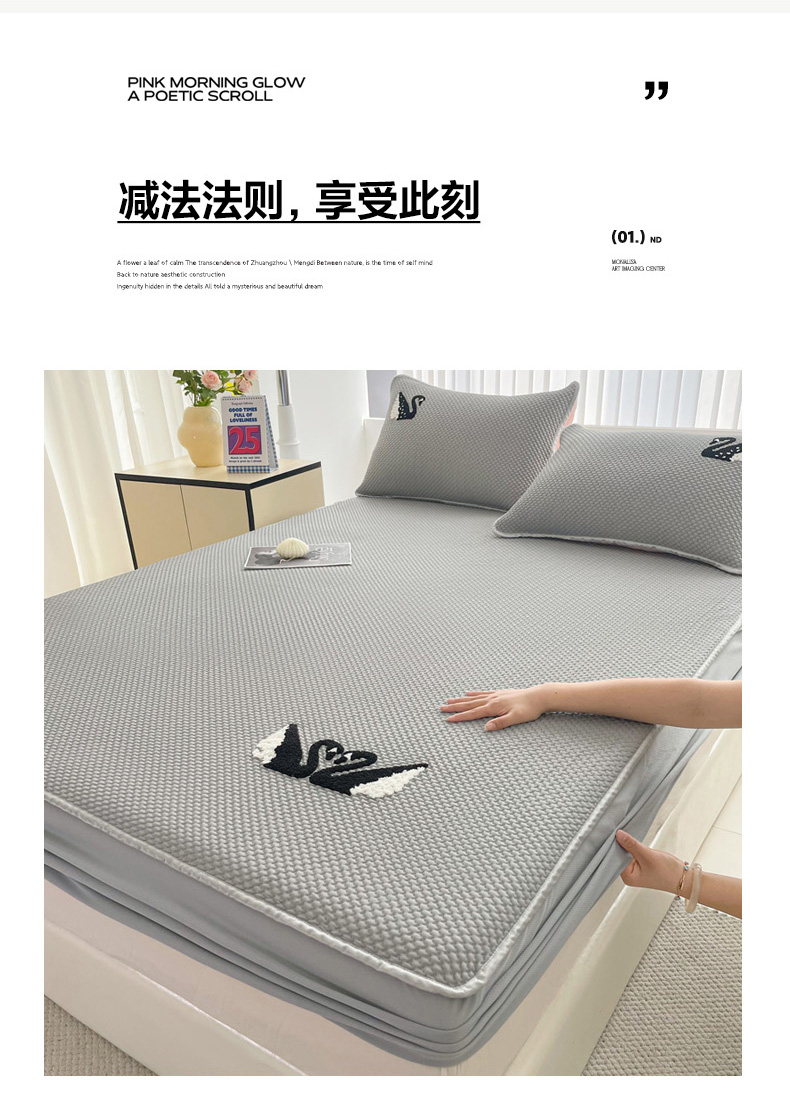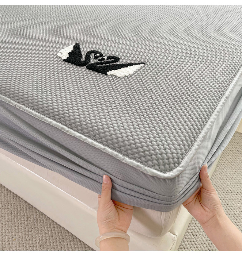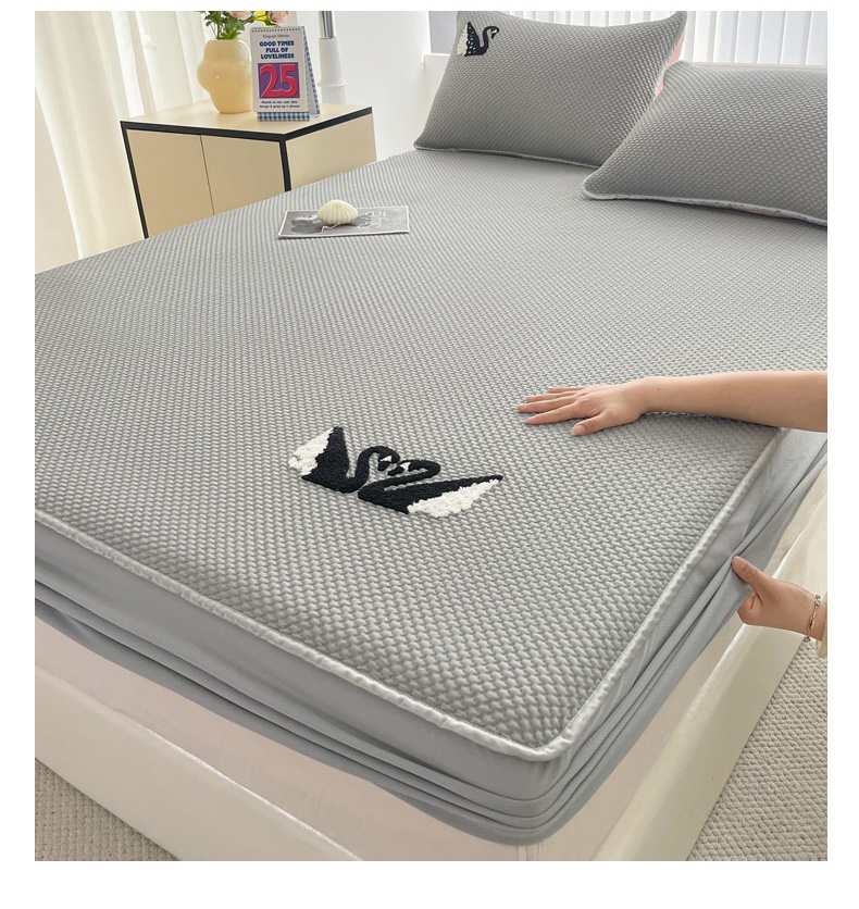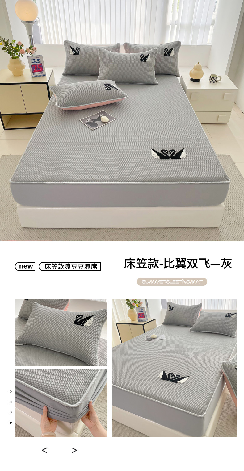 商品名称:恋佳居2025新款A类乙伦PE凉豆豆毛巾绣床笠冰丝席(床笠款) 比翼双飞—灰