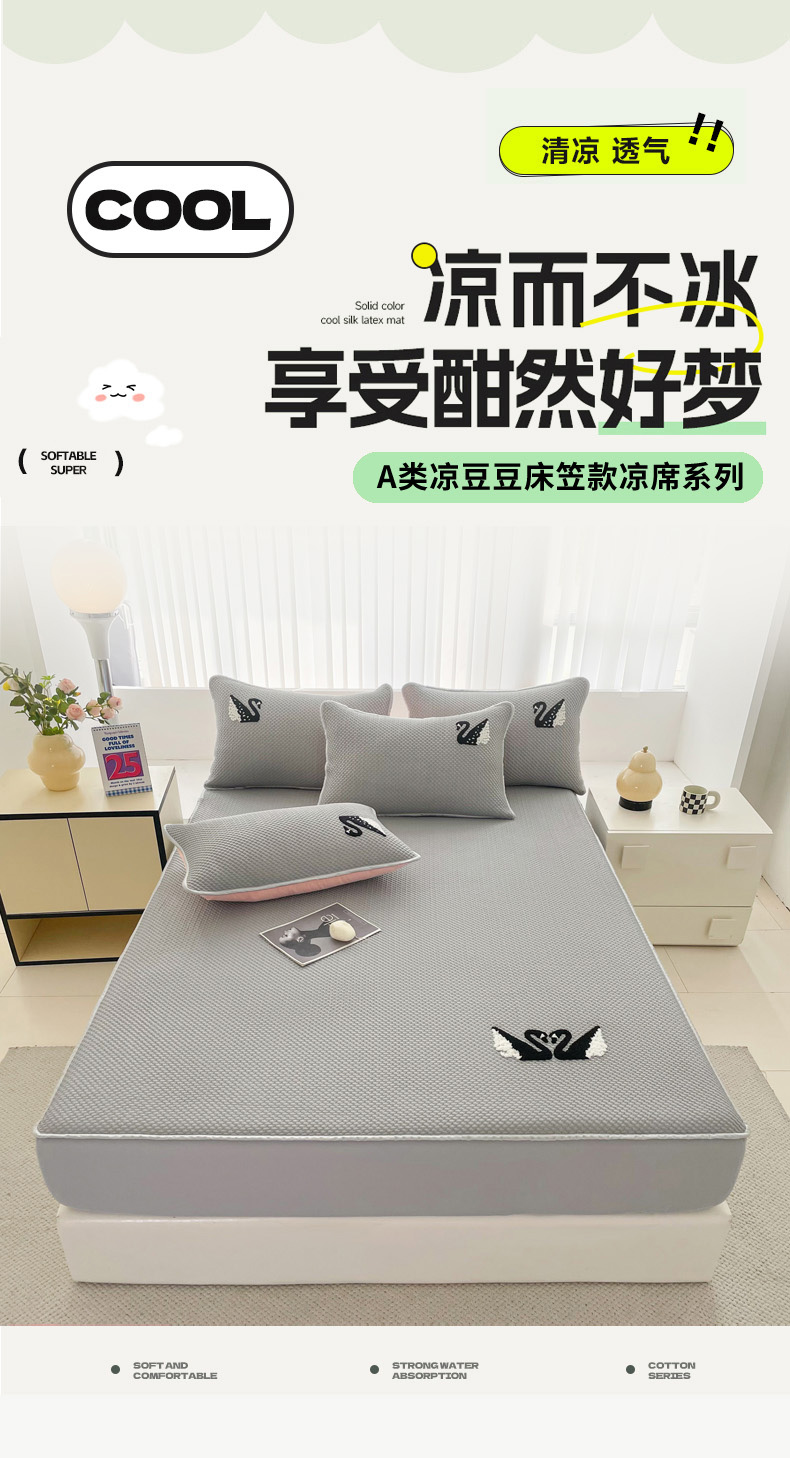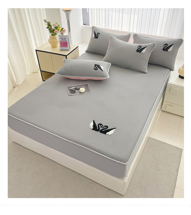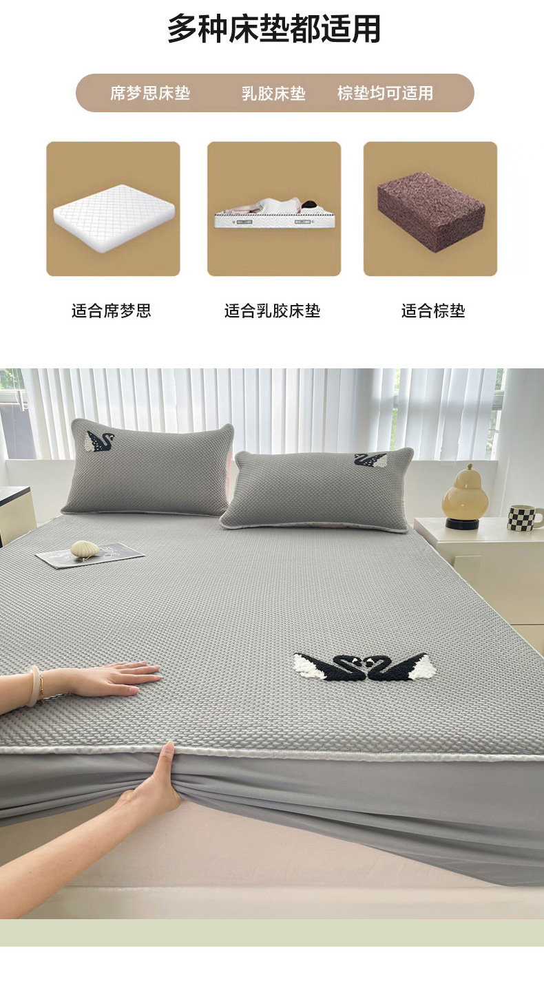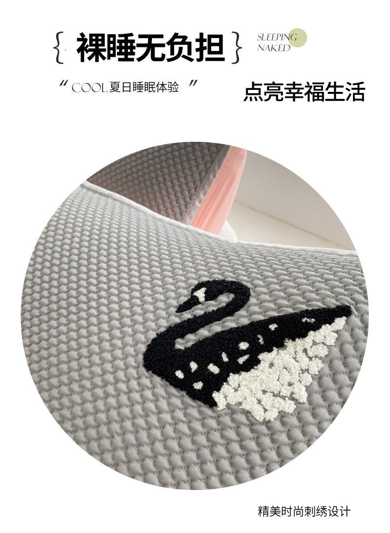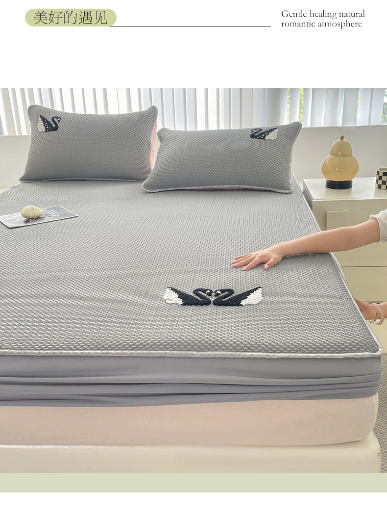商品名称:恋佳居2025新款A类乙伦PE凉豆豆毛巾绣床笠冰丝席(床笠款) 比翼双飞—灰