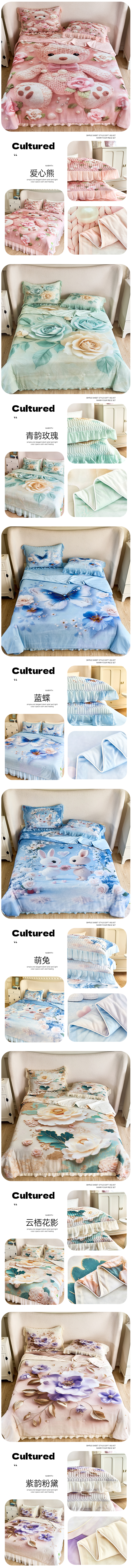 (总)苹果星家纺 2025新款5D数码印花凉干丝床裙床盖凉席夏被四件套