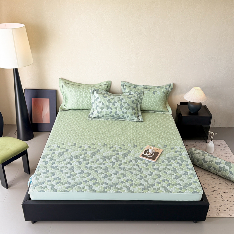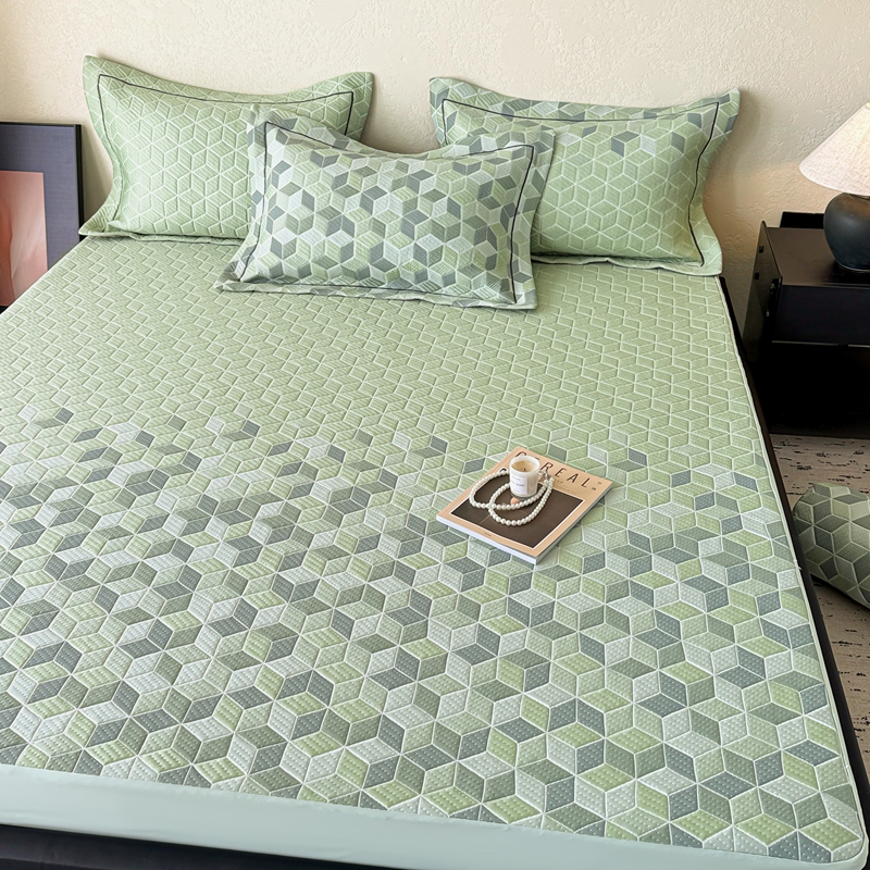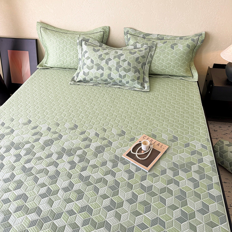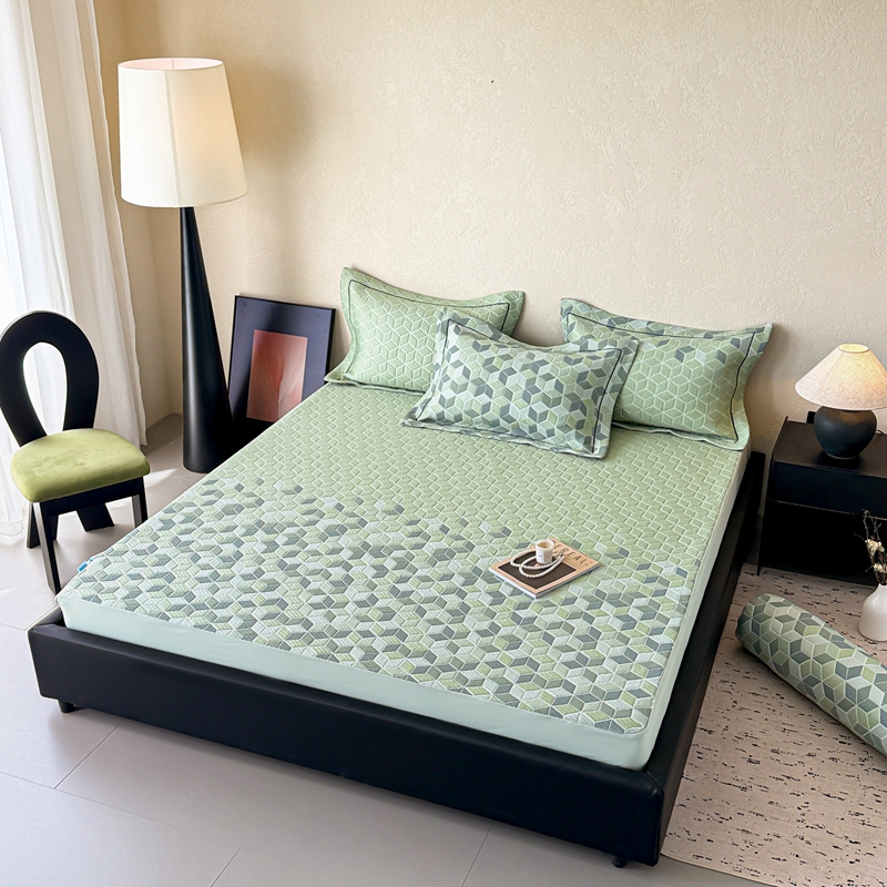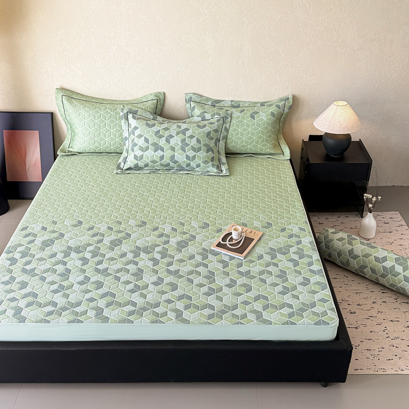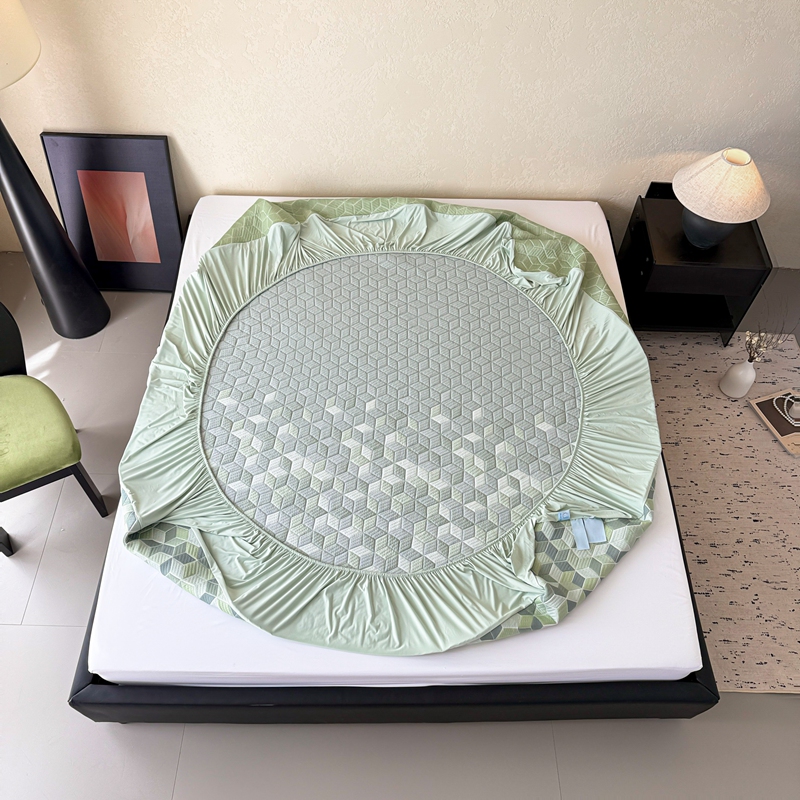 床上用品 > 床笠 > 若未家居 LOVEWE HOUSE 2025新款800克进口高分子100%乙纶PE冷凝凉感软席凉席渐变色织提花系列床笠-床笠款 魔方-绿