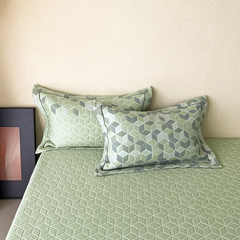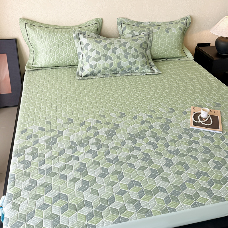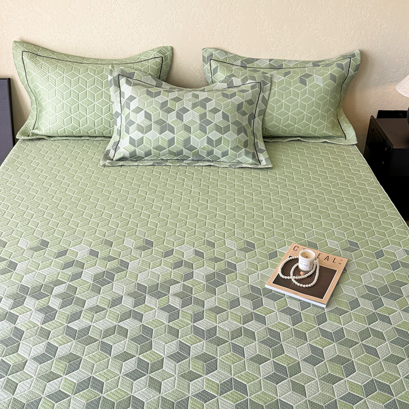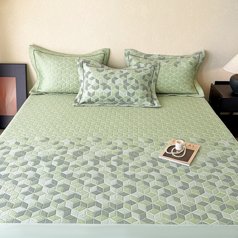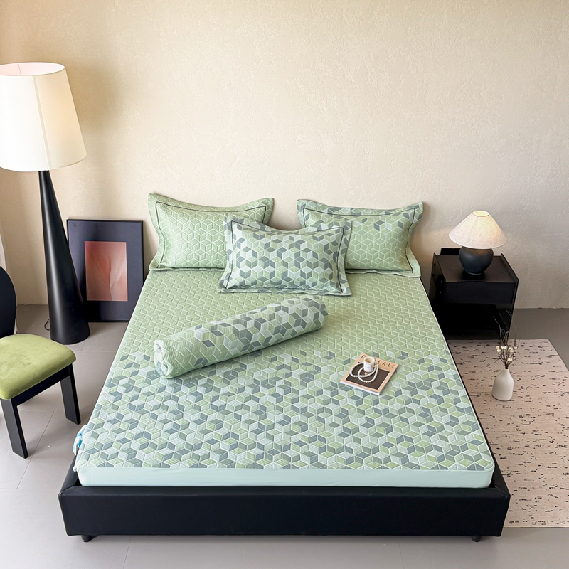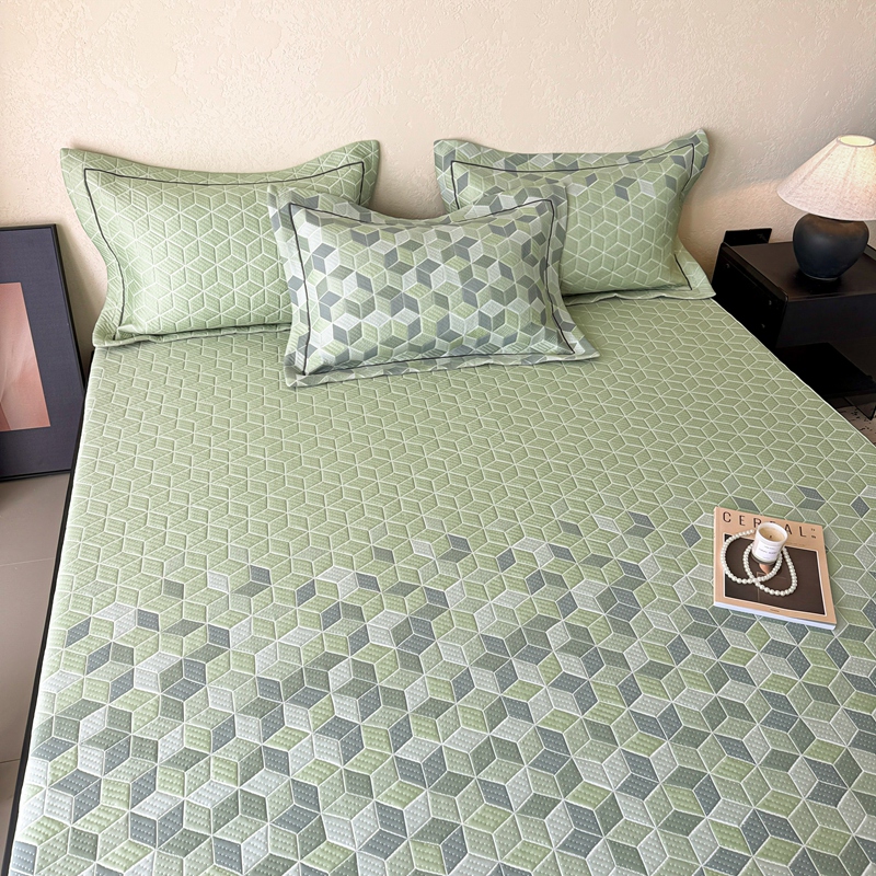 床上用品 > 床笠 > 若未家居 LOVEWE HOUSE 2025新款800克进口高分子100%乙纶PE冷凝凉感软席凉席渐变色织提花系列床笠-床笠款 魔方-绿
