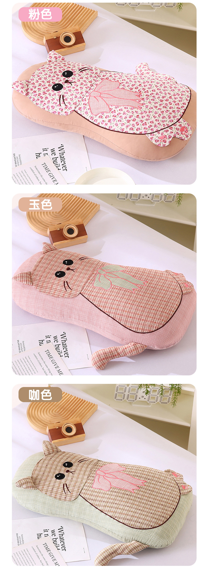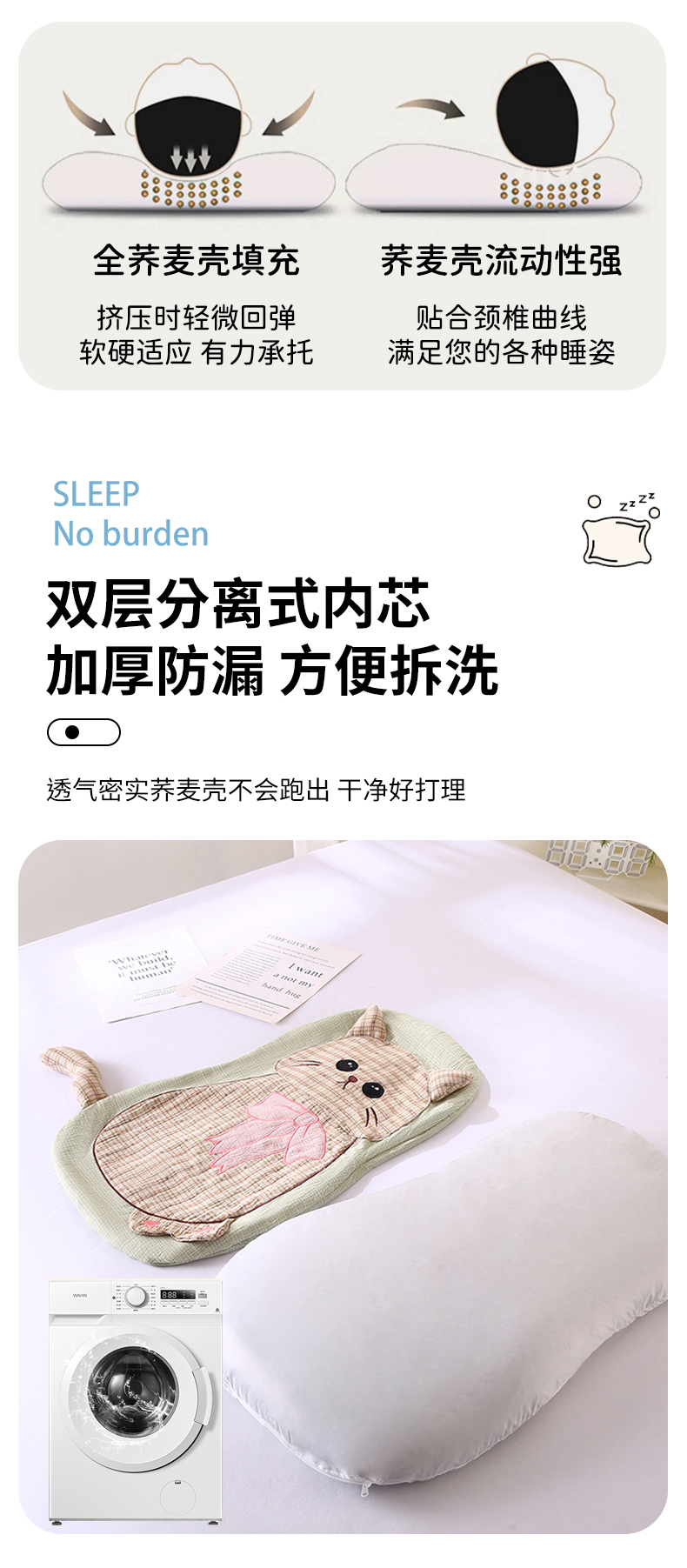 (总)蔻眠 2024新款可爱猫全棉儿童成人通用荞麦枕芯卡通枕头,粉色30x65cm,橘色30x65cm,咖色30x65cm,深蓝30x65cm,水绿30x65cm,天蓝30x65cm