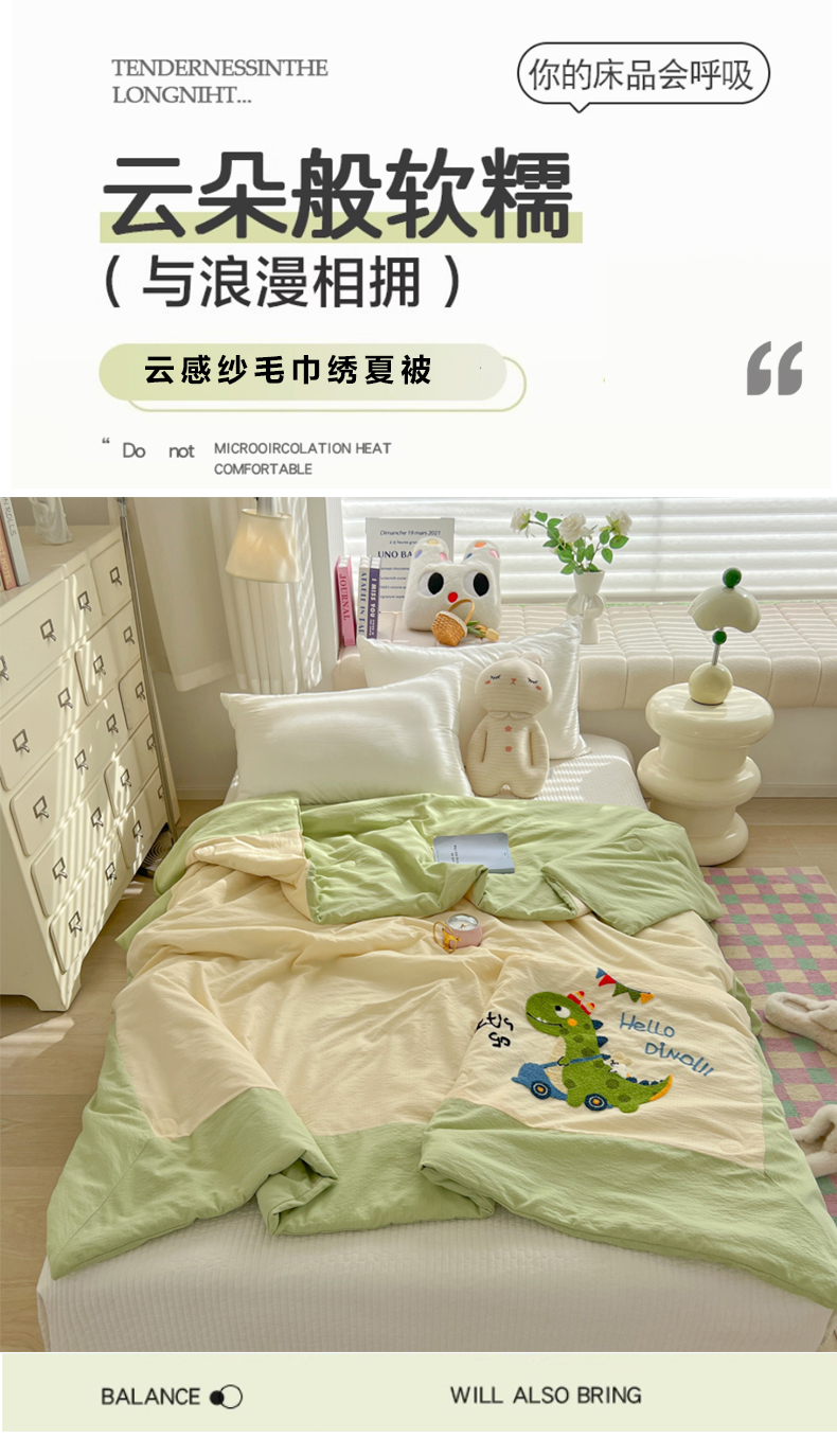 商品名称:(总)子钦家纺 2025新款云感纱木棉毛巾绣夏被夏凉被空调被