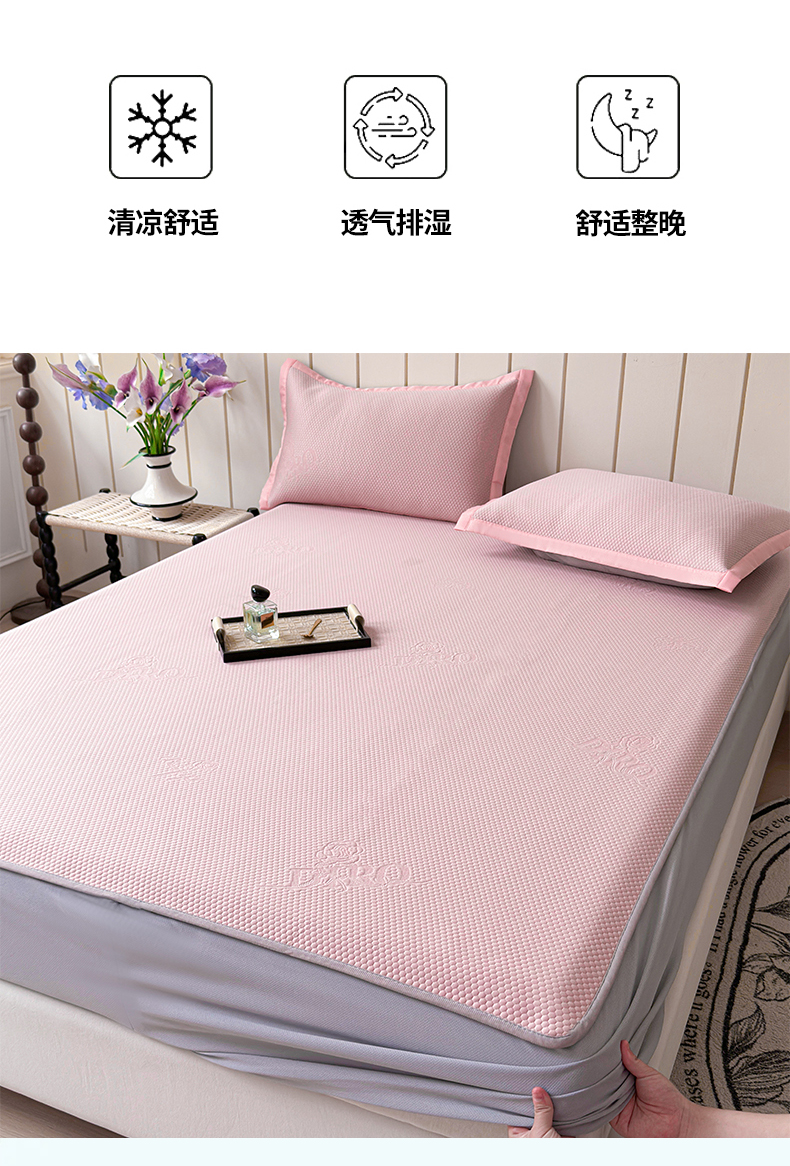 瑞兴纺 2025新款复合加厚高克重凉感席床笠款 玫瑰之恋-粉