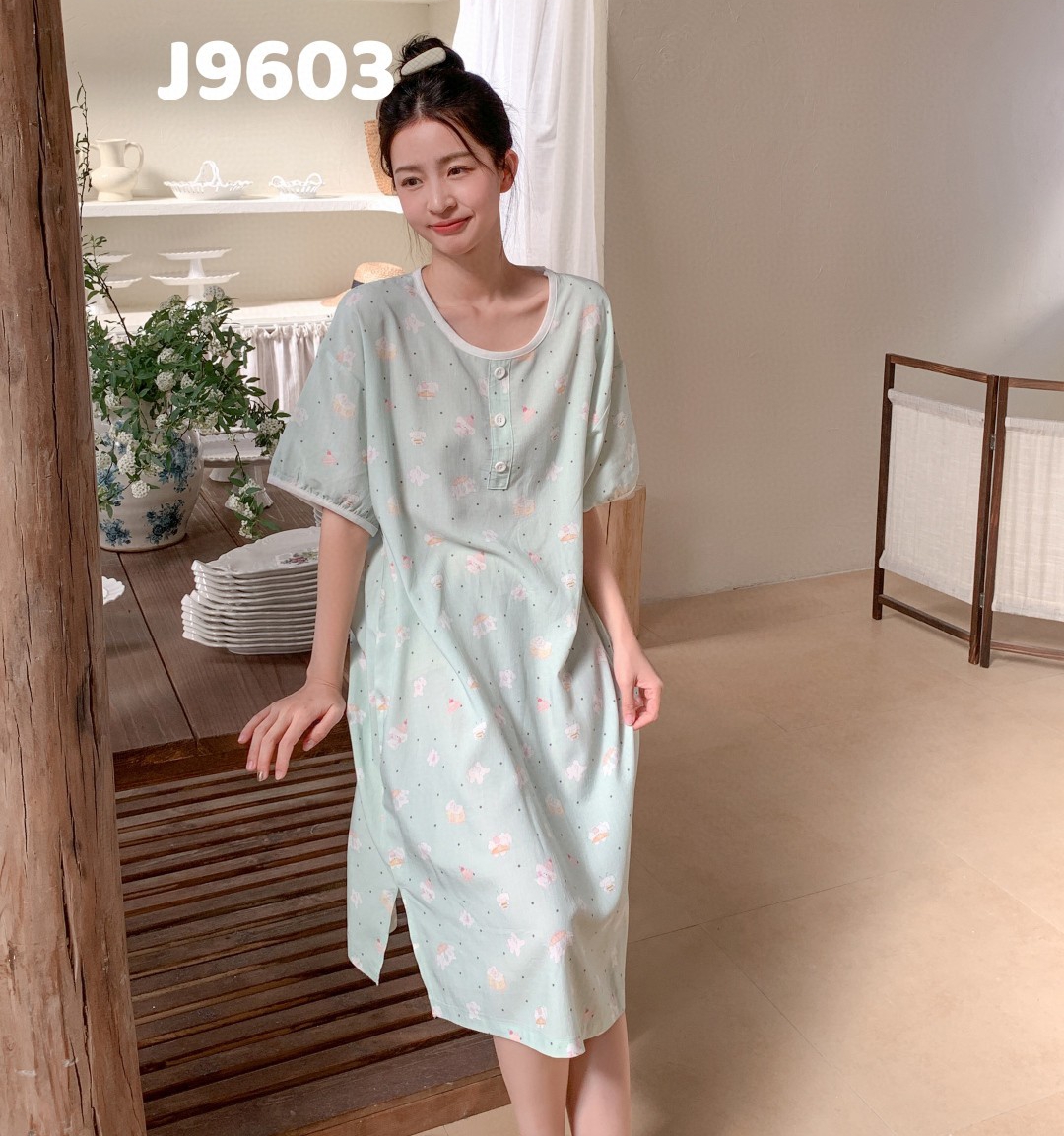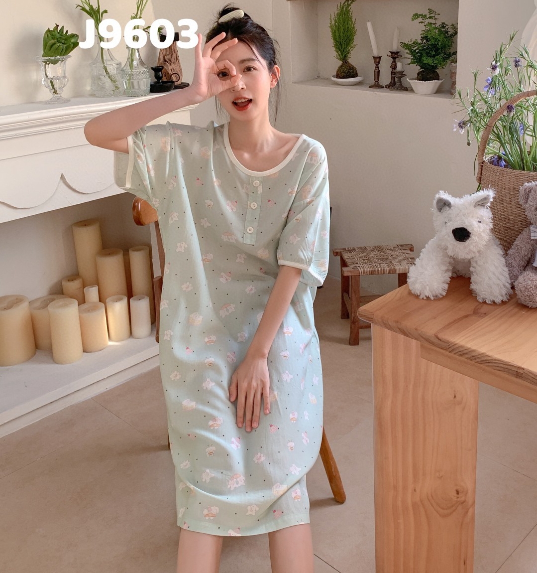 当前位置: 91家纺网 > 商品网购 > 居家日用 > 睡衣/家居服套装 > 妍景家居生活馆 2025新款仲夏午后懒人睡裙 绿色小狗