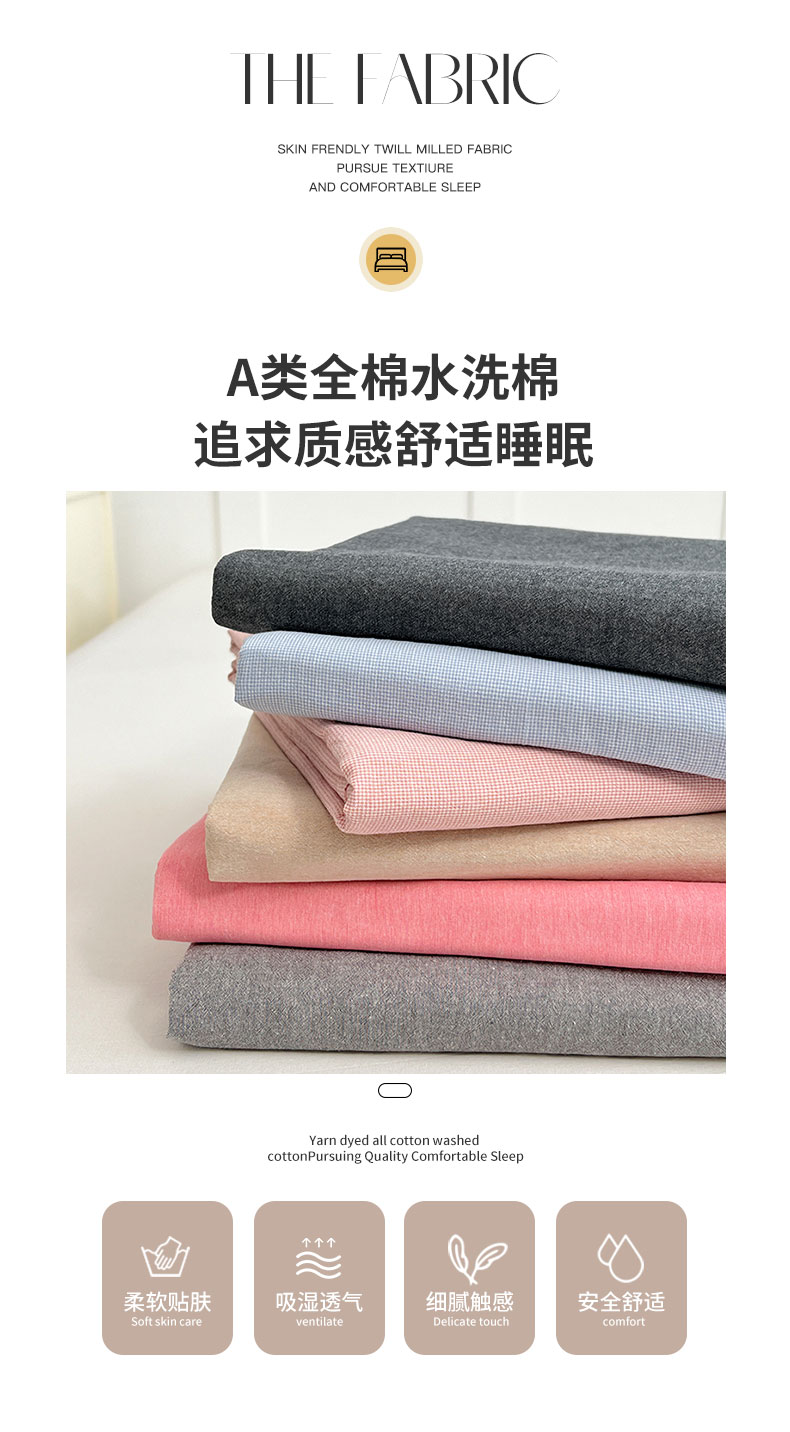 (总)2025新款色织全棉水洗棉单床单柔软亲肤床单被套枕套床上用品