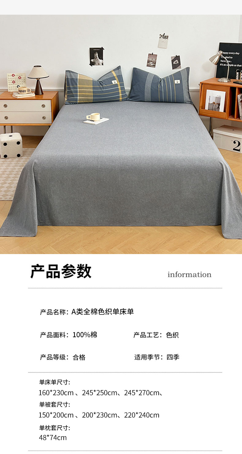 商品名称:(总)2025新款色织全棉水洗棉单床单柔软亲肤床单被套枕套床上用品