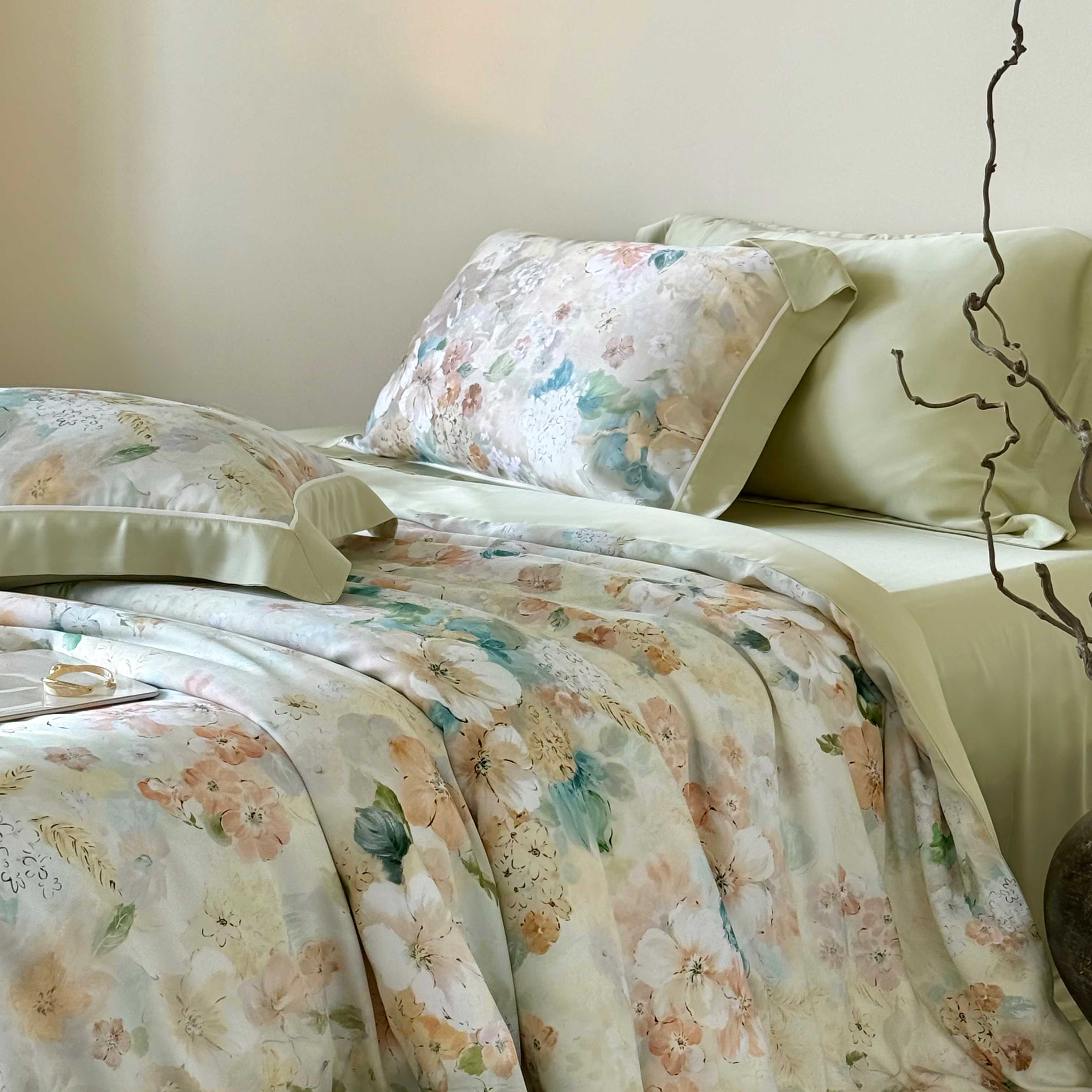 (总)馨蕊家居 2025新款春夏新品天丝印花80SLF奥地利兰精天丝夏被四件套-初见,夏被初见-蔷薇粉,夏被初见-氧气绿