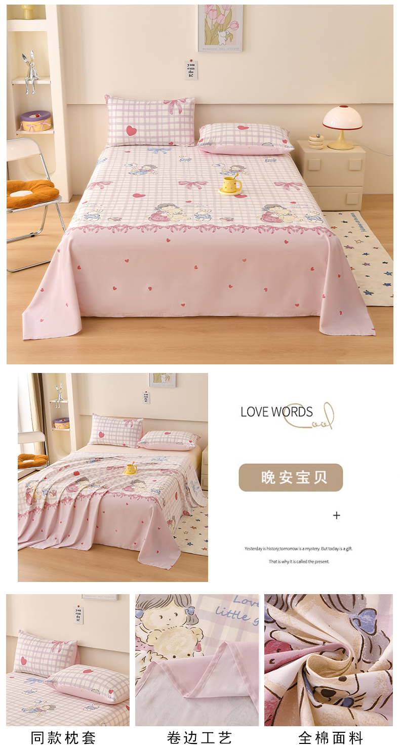 商品名称:宇彬家纺 2025直播新款13070全棉纯棉印花双人单床单枕套三件套喷气小清新简约学生被单