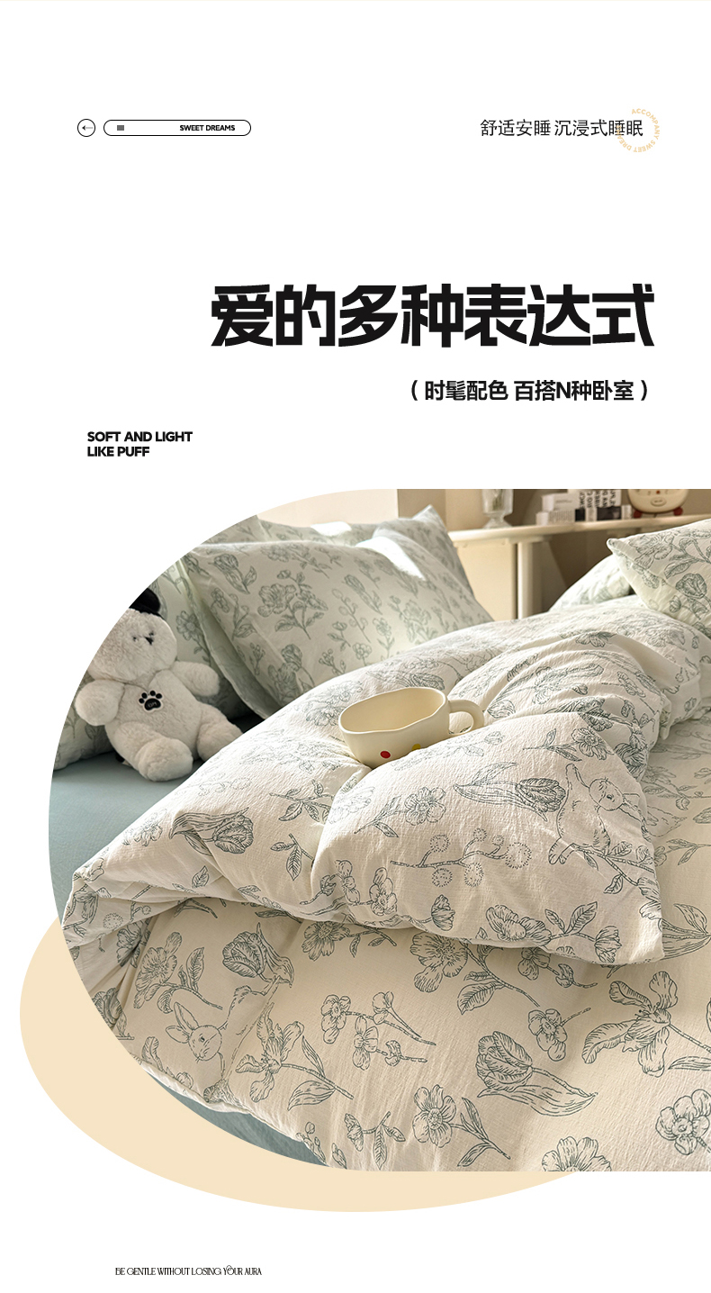 (总)韩巢家纺 2026新款水洗棉花边款四件套,灰蒙小狗【大花边款】,春日与玫瑰【大花边款】,繁花似梦【大花边款】,花时宇间【大花边款】,久期诗朵-黄【大花边款】,可可腊肠犬【大花边款】,奶油樱桃【大花边款】,软糖猫【大花边款】,甜樱恋曲【大花边款】,温暖粉心【大花边款】,小花野-紫【大花边款】,小熊冰淇淋【大花边款】,星梦蝶结【大花边款】,幸运可爱兔【大花边款】,摘樱桃的小熊【大花边款】