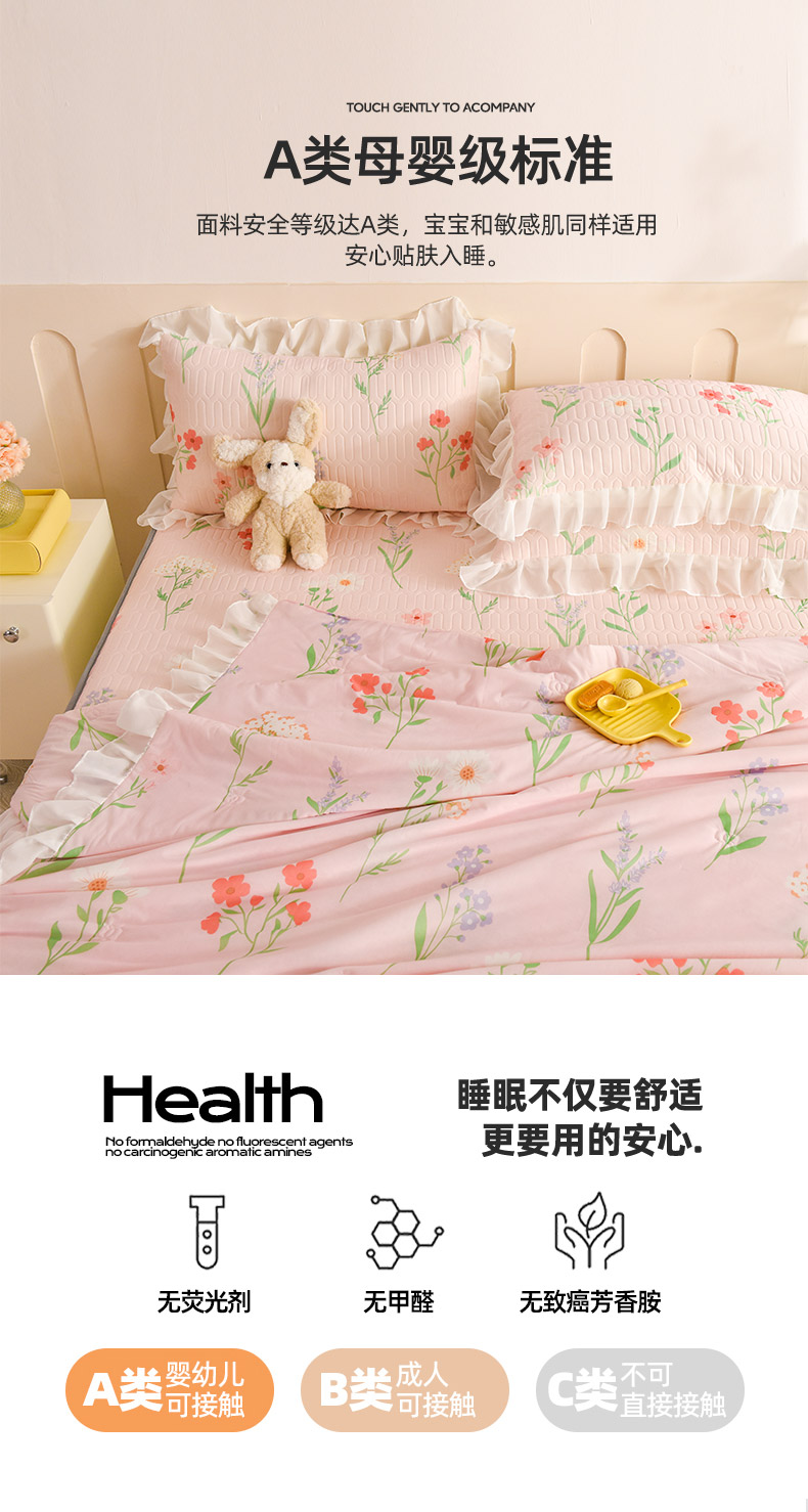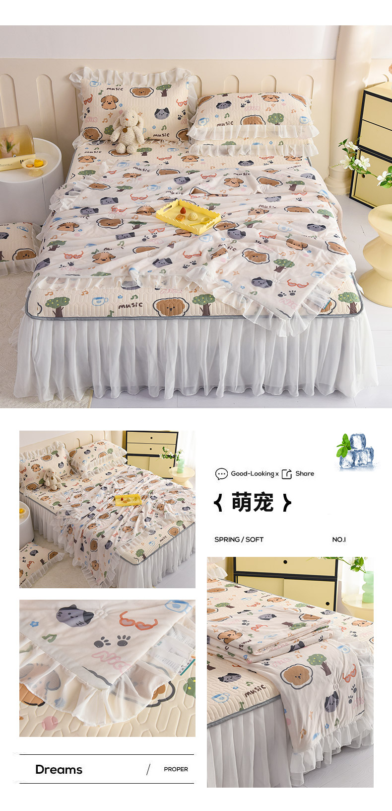 当前位置: 91家纺网 > 商品网购 > 床品套件 > 四件套 > 夏被四件套 > 悦织湾家纺 2025新款A类凉感丝床裙款乳胶凉席席子夏被夏凉被空调被四件套 格子小熊