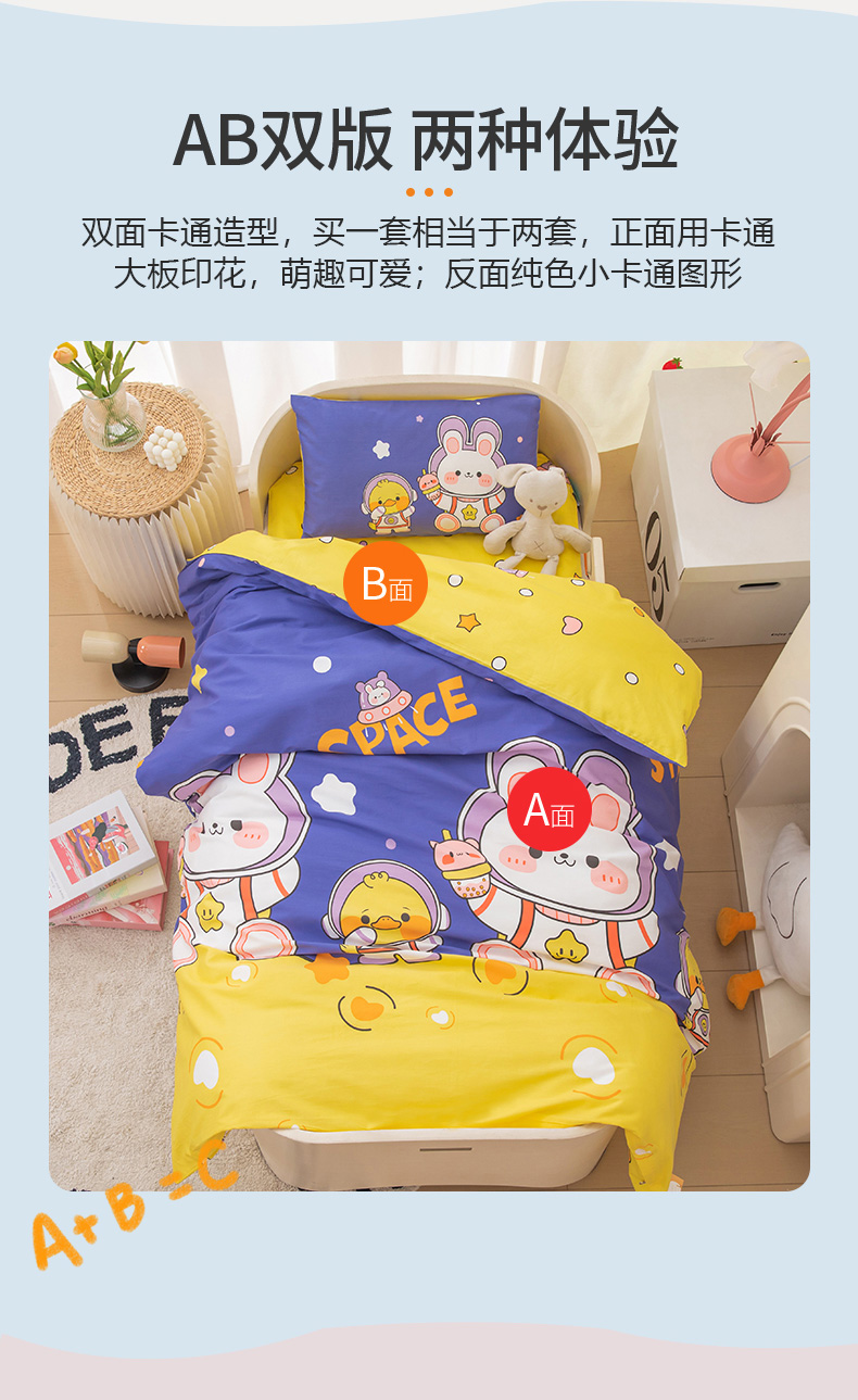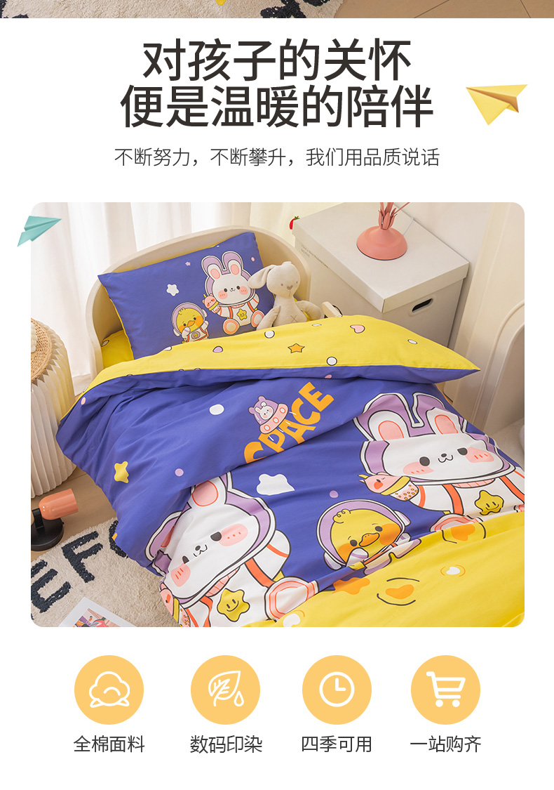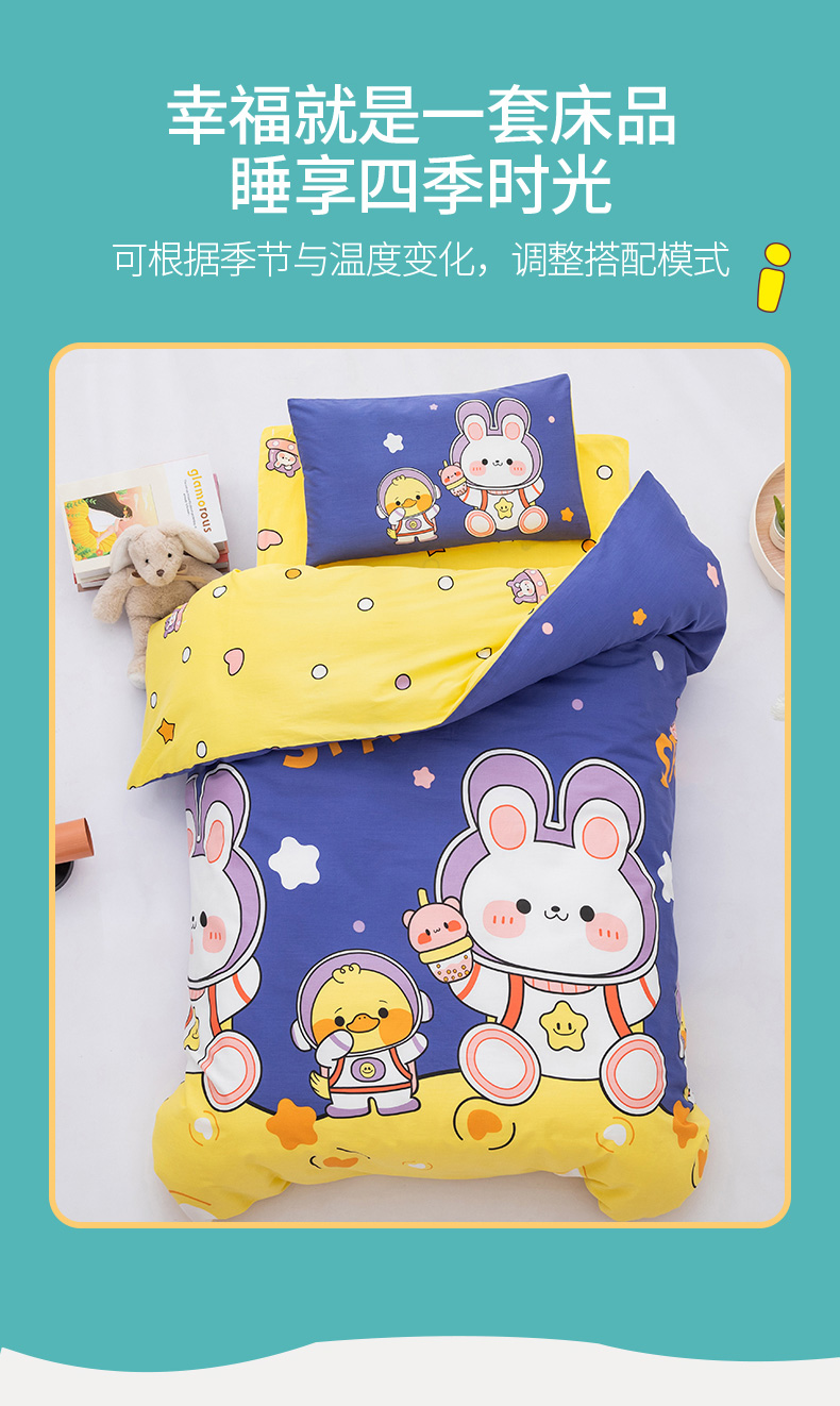 当前位置: 91家纺网 > 商品网购 > 床品套件 > 四件套 > 其它四件套 > 嗨皮宝贝 2025新款全棉纯棉13372幼儿园三件套多件套 航空兔