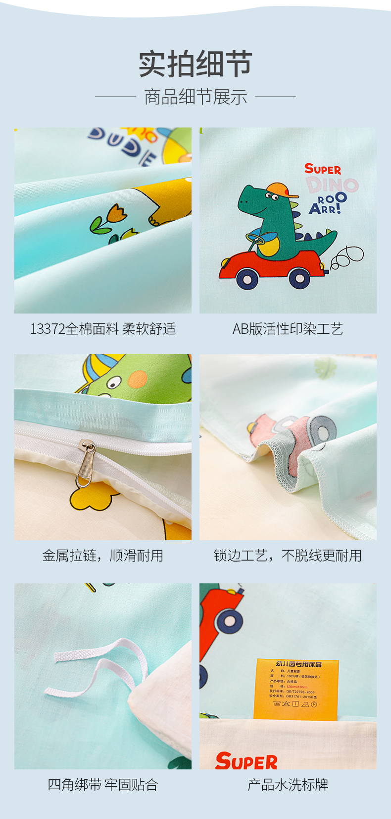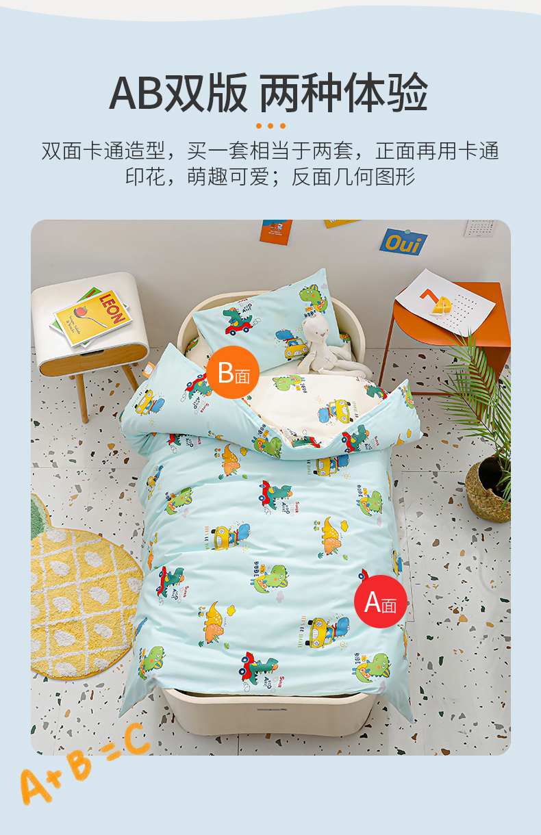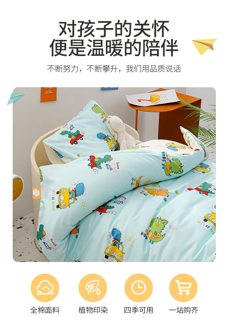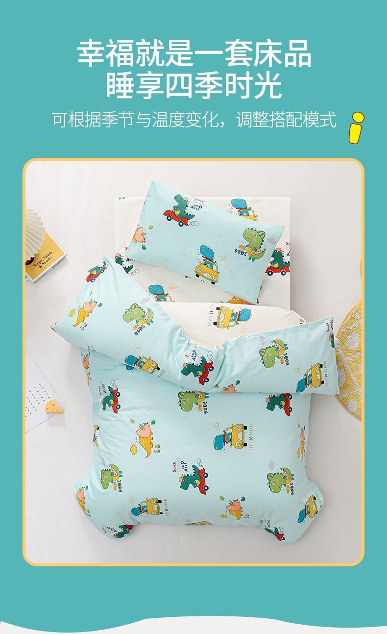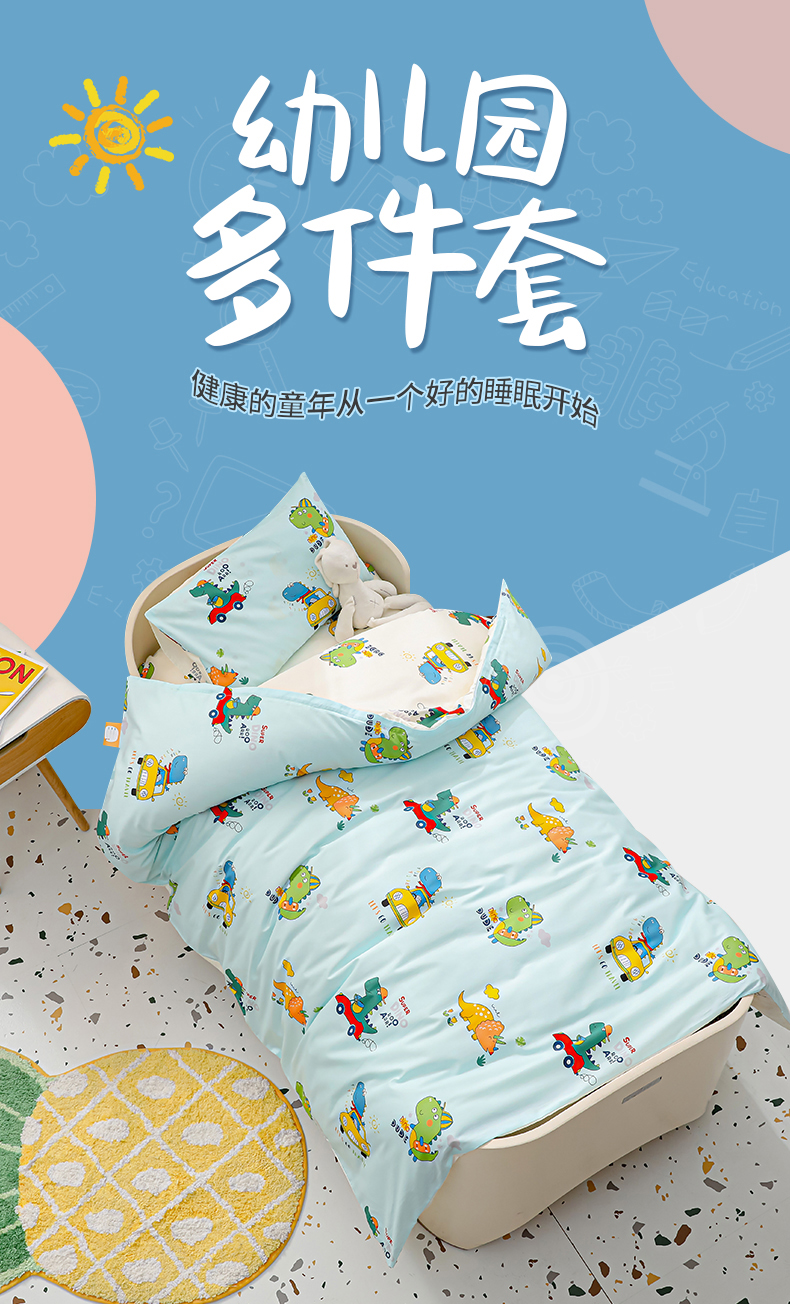 当前位置: 91家纺网 > 商品网购 > 床品套件 > 四件套 > 其它四件套 > 嗨皮宝贝 2025新款全棉纯棉13372幼儿园三件套多件套 七彩恐龙