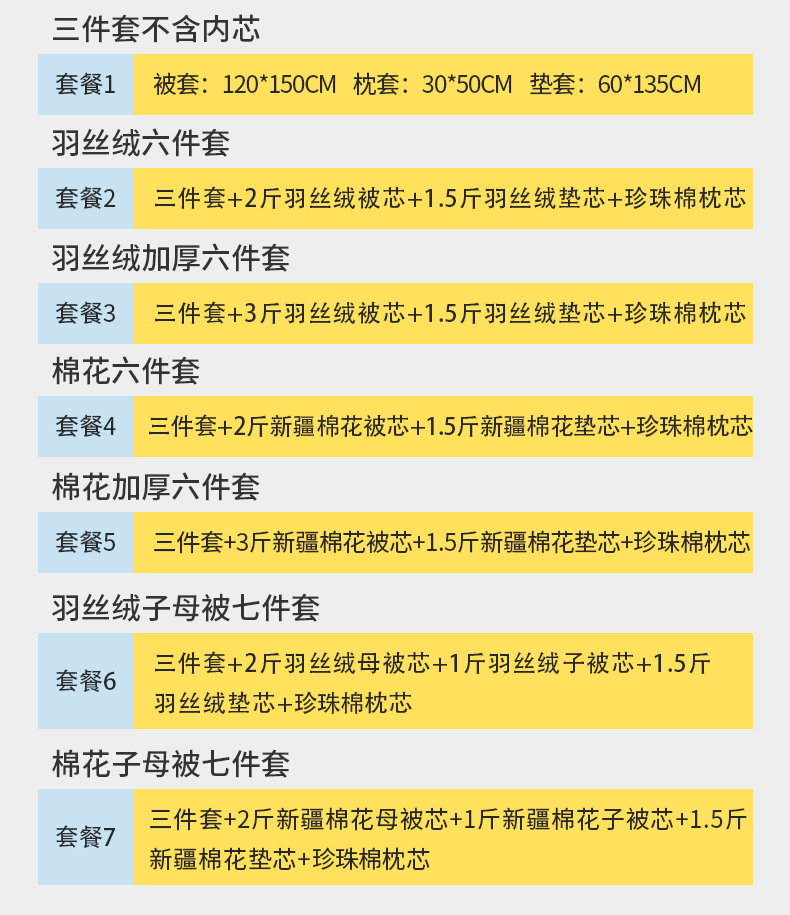 3斤丝绵芯六件套 | ¥92.00 |