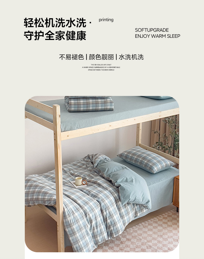 当前位置: 91家纺网 > 商品网购 > 床品套件 > 三件套 > 玖弘家居 2025新款全棉纯棉色织水洗棉学生宿舍三件套四件套上下铺三件套 简兮蓝