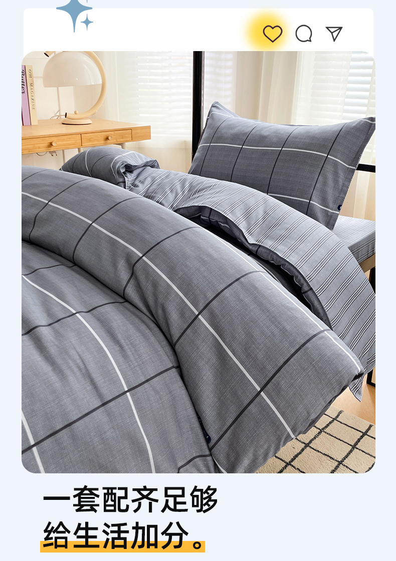 当前位置: 91家纺网 > 商品网购 > 床品套件 > 三件套 > 锦润 2025新款印花12868全棉学生宿舍三件套纯棉六件套光隙-灰