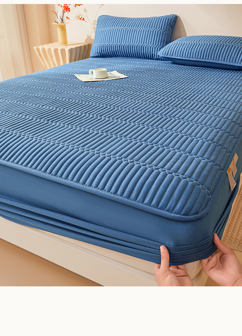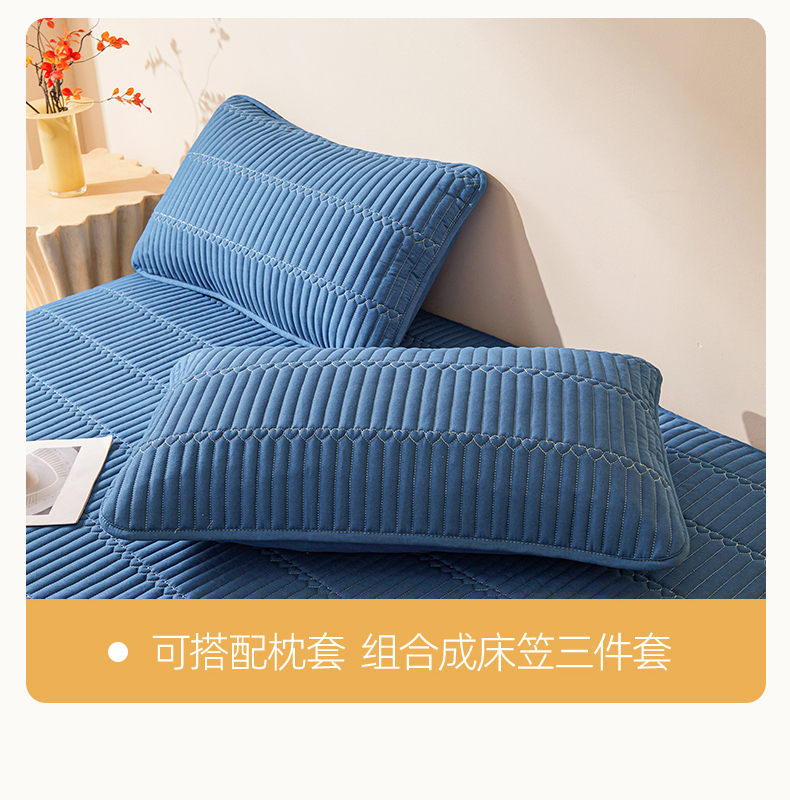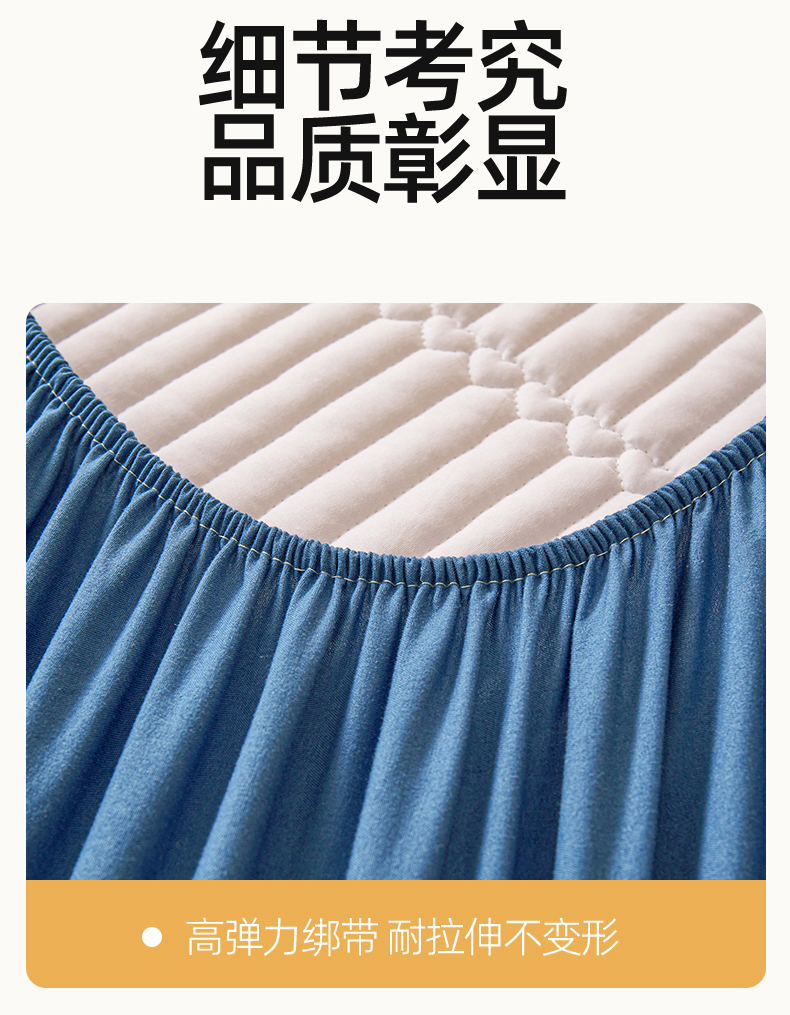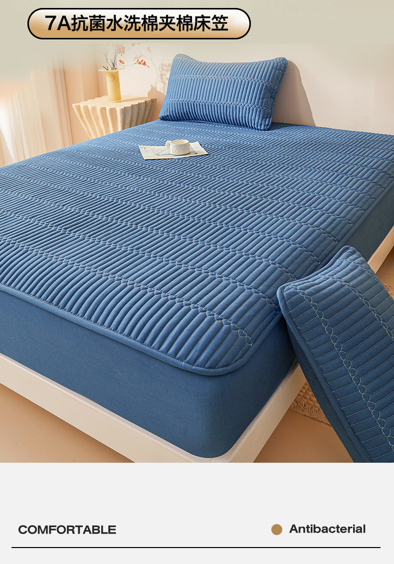• 91家纺网 家纺一手货源 找家纺 雯豆家纺 2025新款简爱A类夹棉床笠三件套水洗棉磨毛床单保护套 简爱-黛蓝