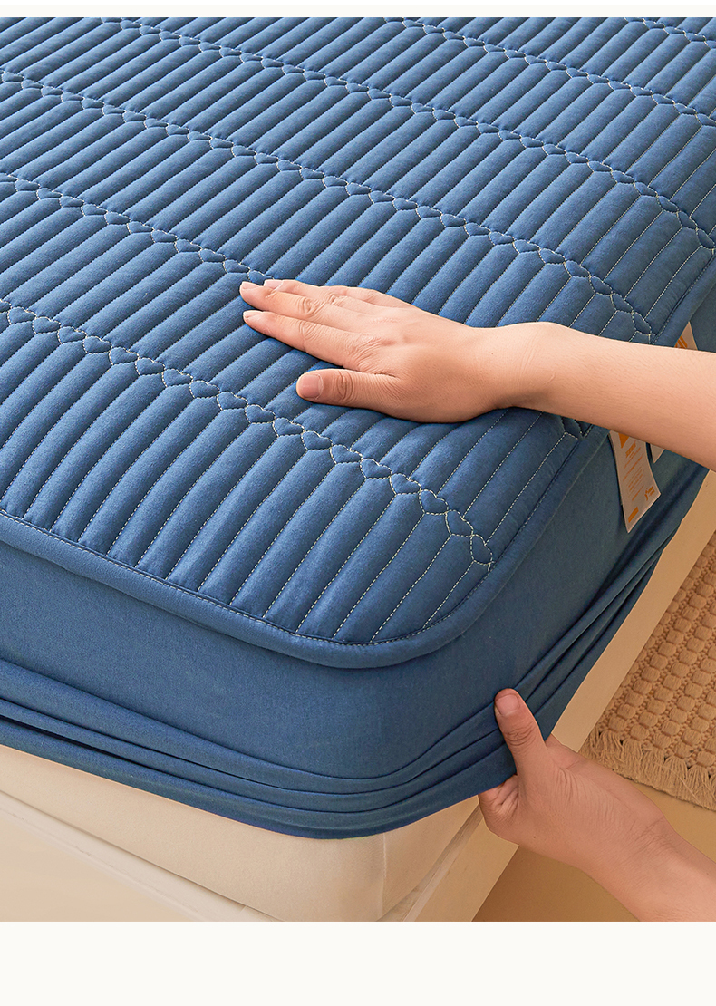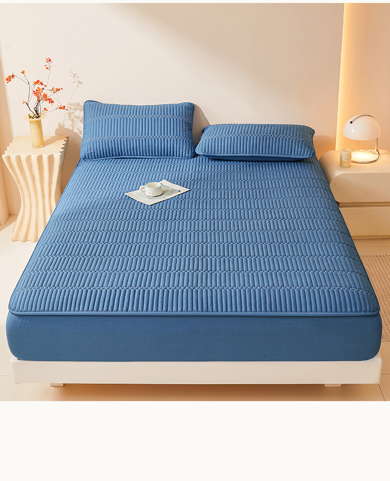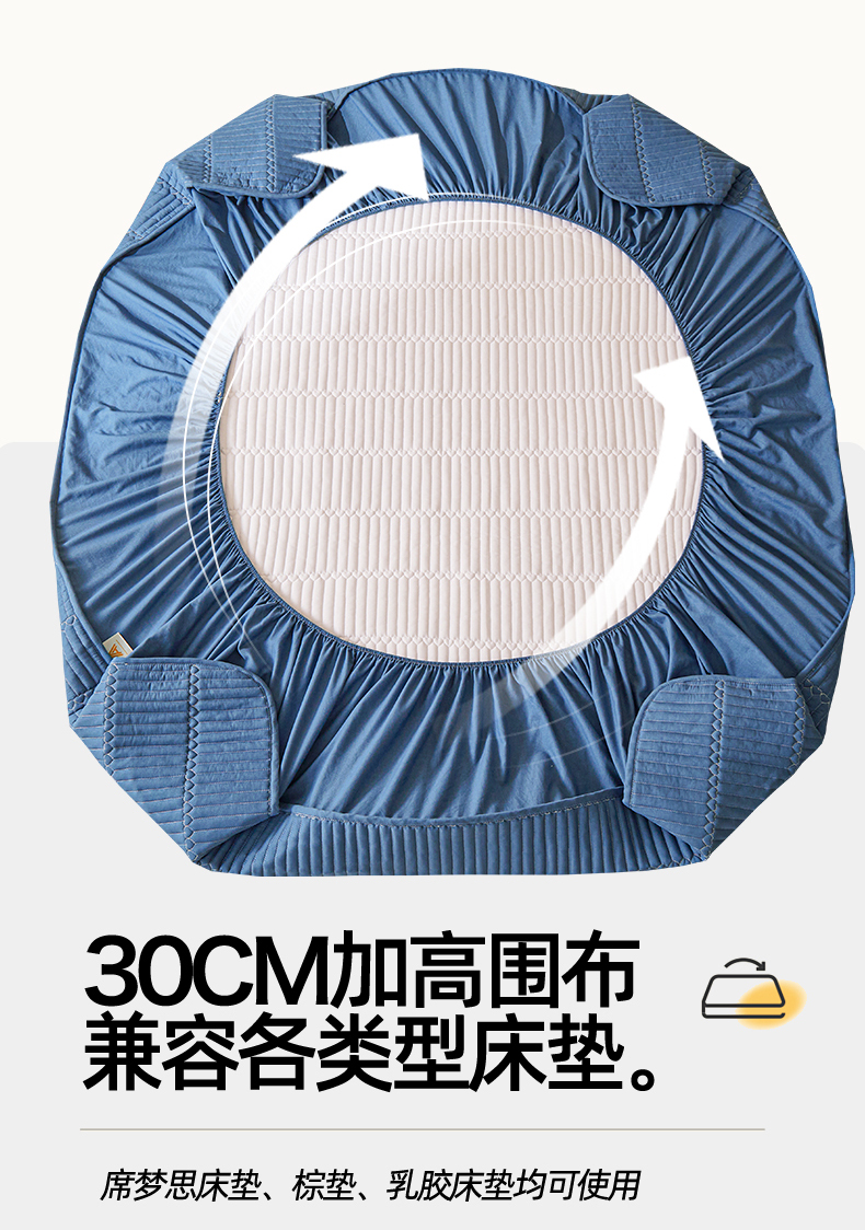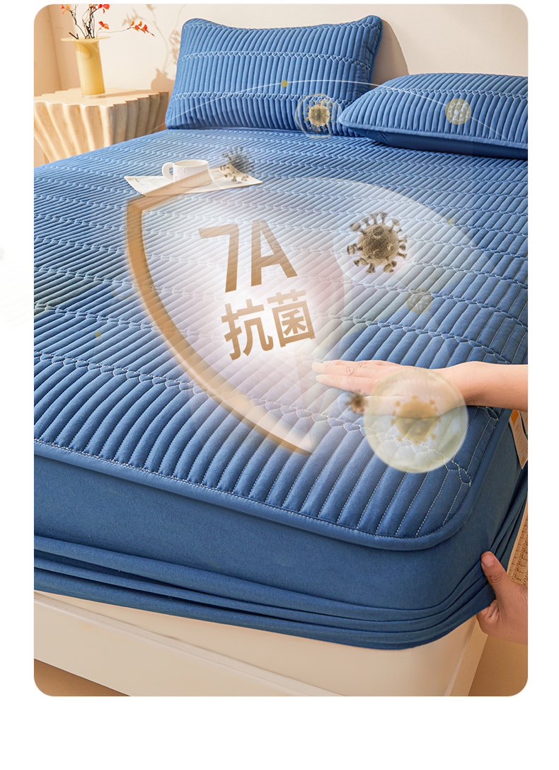 • 91家纺网 家纺一手货源 找家纺 雯豆家纺 2025新款简爱A类夹棉床笠三件套水洗棉磨毛床单保护套 简爱-黛蓝