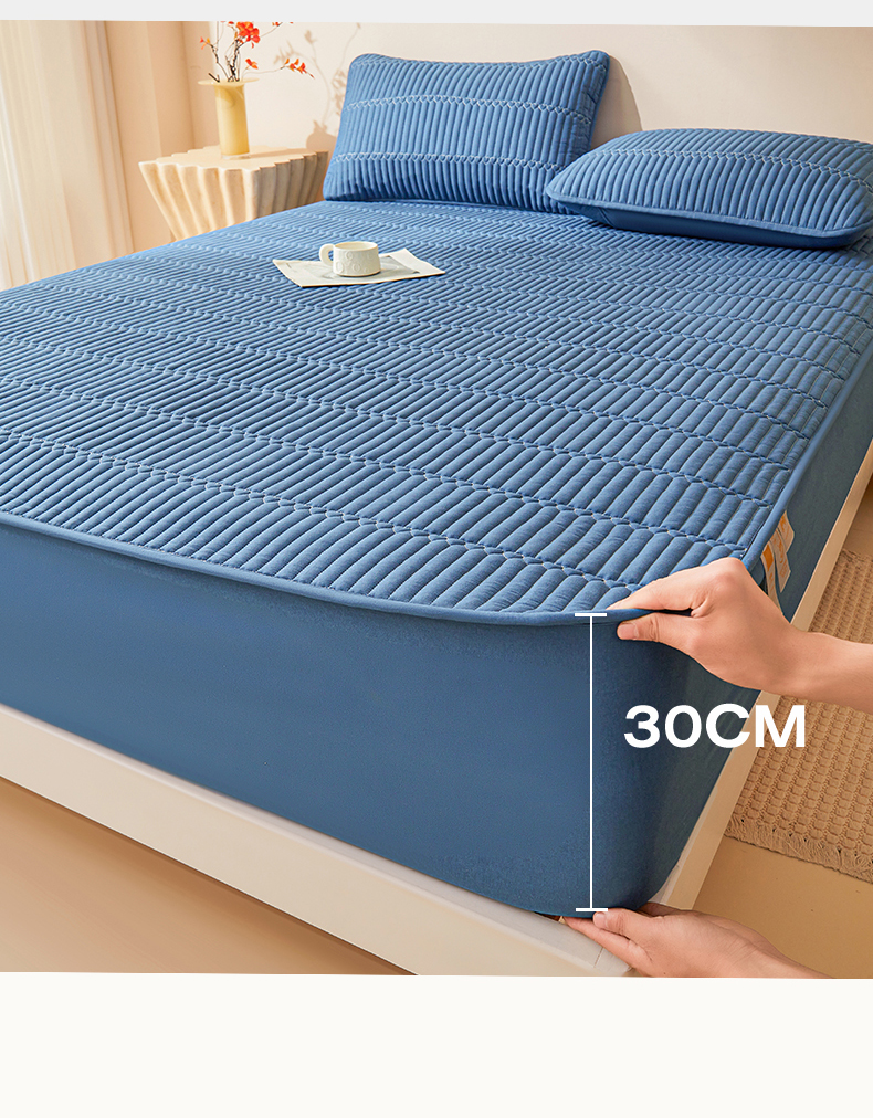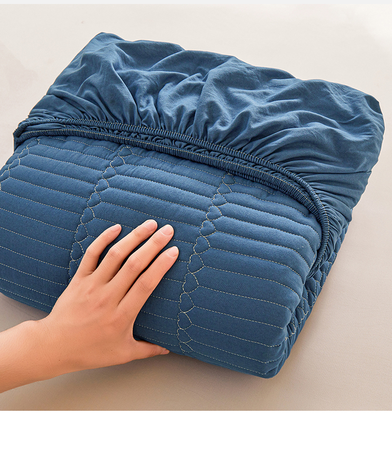雯豆家纺 2025新款简爱A类夹棉床笠三件套水洗棉磨毛床单保护套 简爱-黛蓝