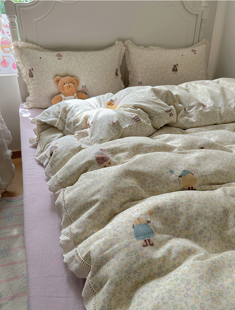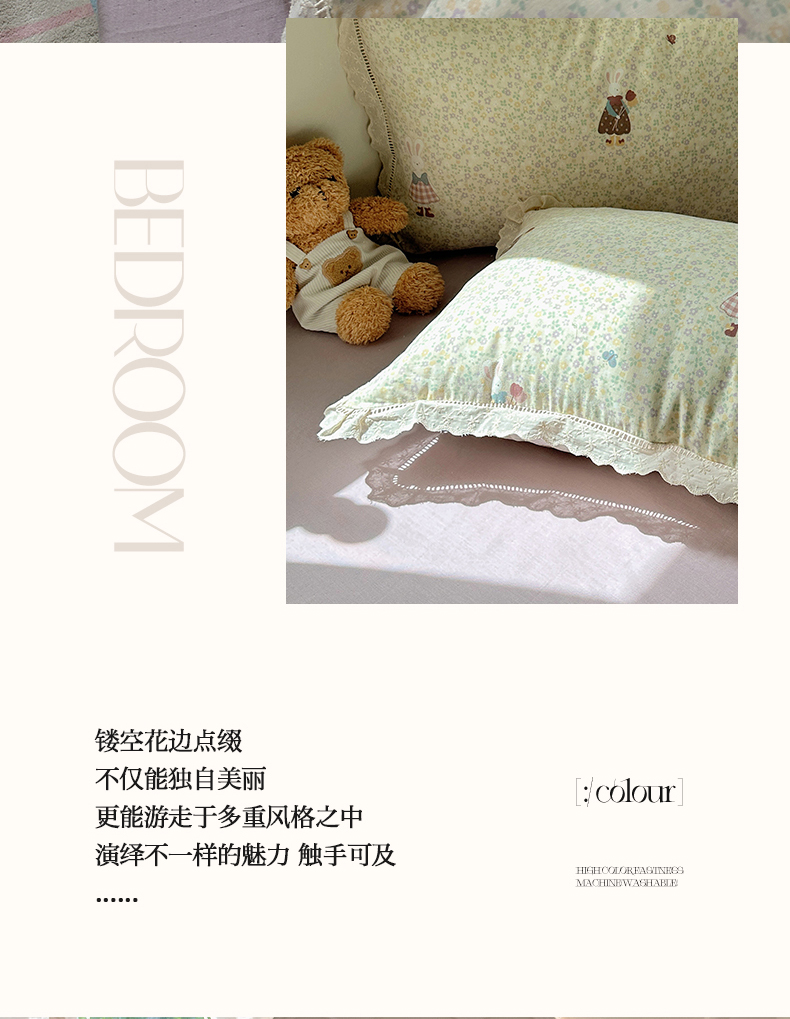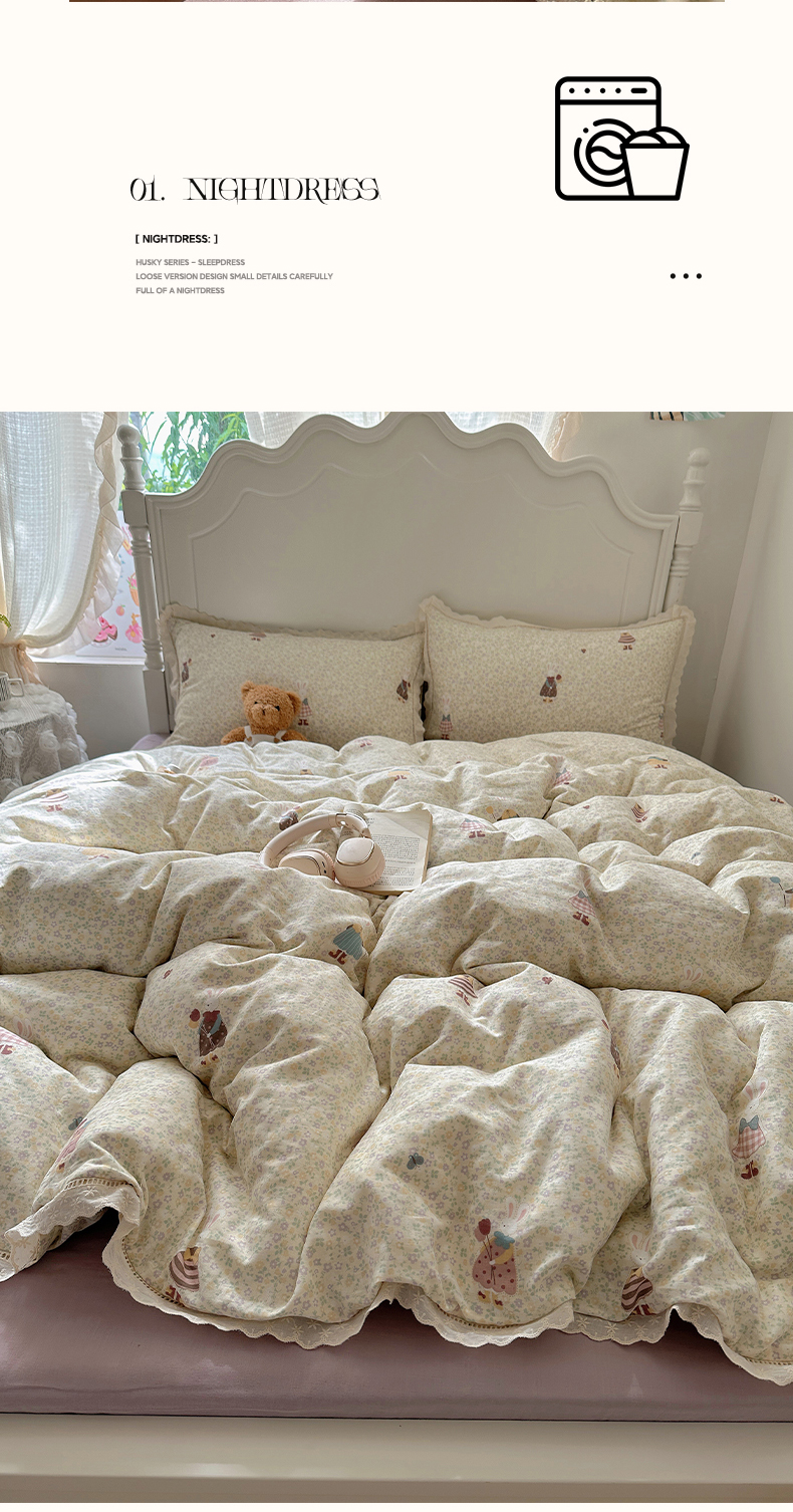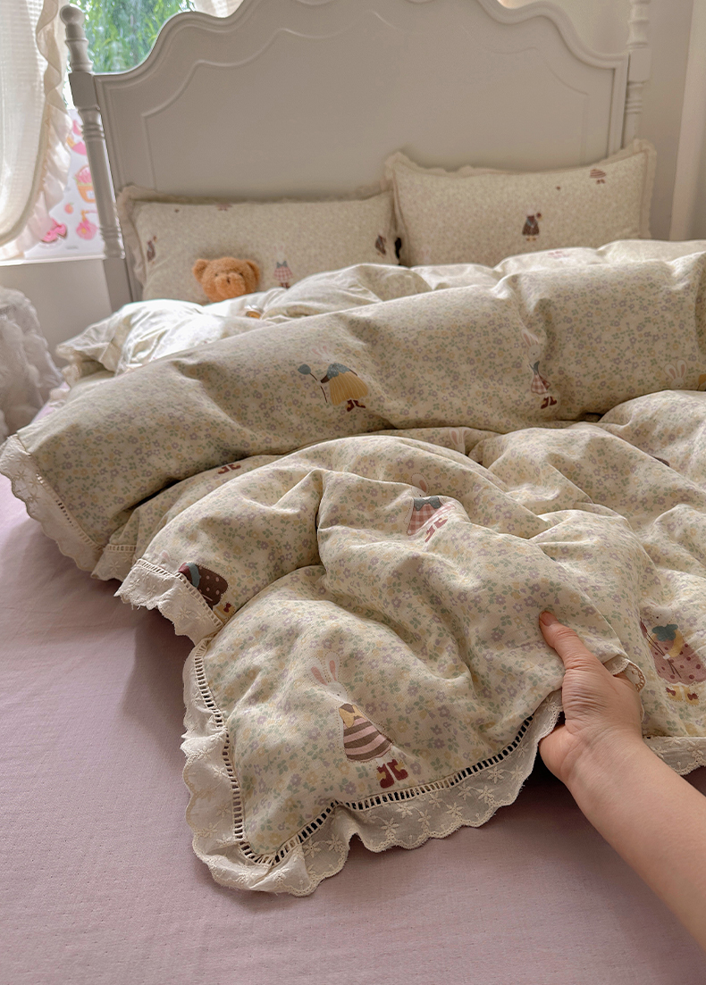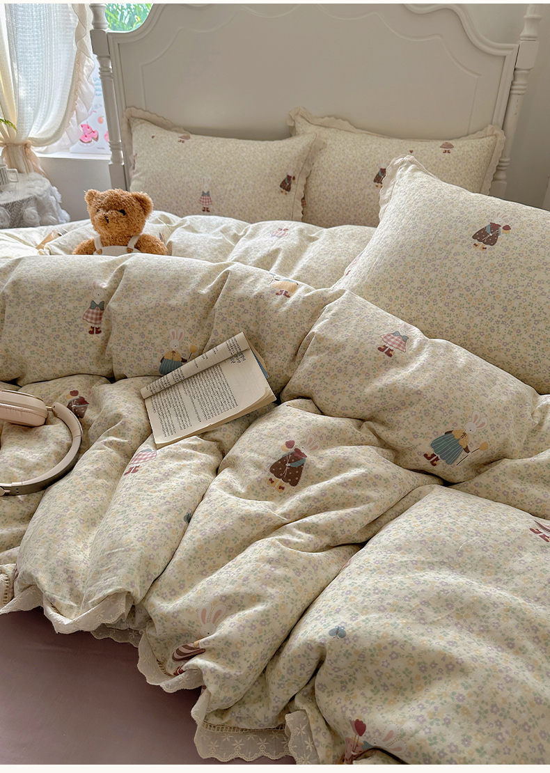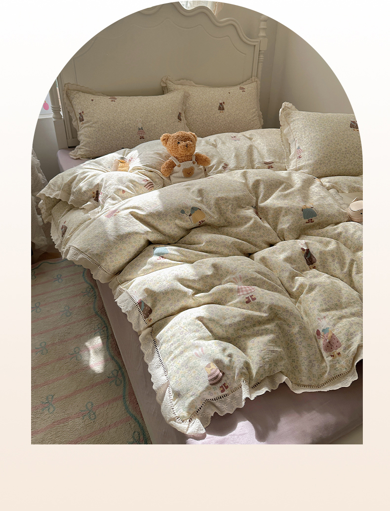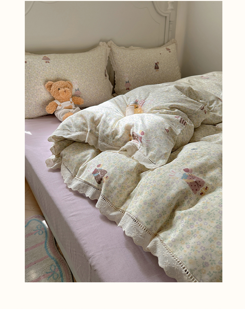 当前位置: 91家纺网 > 商品网购 > 床品套件 > 四件套 > 全棉普通四件套 > 瑞莱 2025新款全棉纯棉A类有氧双层纱镂空花边四件套 镂空-原宿小兔