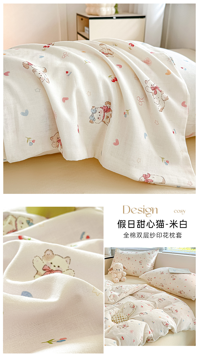 (总)芙绣家纺 2025新款A类全棉双层纱小清新印花单被套学生单被套单枕套,春风里,繁花似锦,花间絮语,假日甜心猫-粉色,假日甜心猫-米白,漫天心,蔷薇梦境,十里桃花,甜心格格,组合图仅供参考