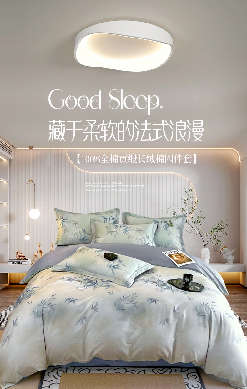 当前位置: 91家纺网 > 商品网购 > 床品套件 > 四件套 > 长绒棉四件套 > 悦织湾家纺 2025爆款上新【全棉60S长绒棉】100%全棉60S长绒棉四件套纯棉印花床上用品34件套轻奢北欧公主风 竹影诗叶