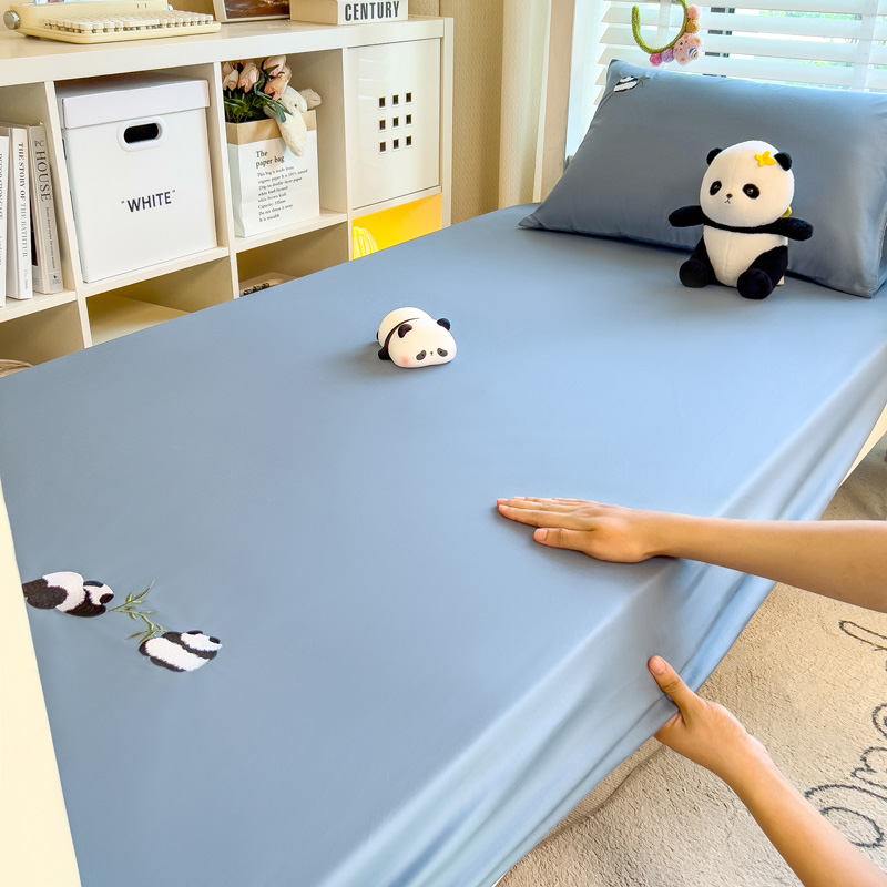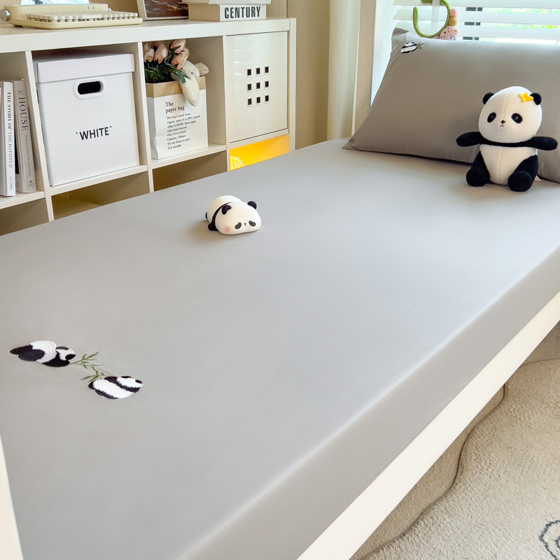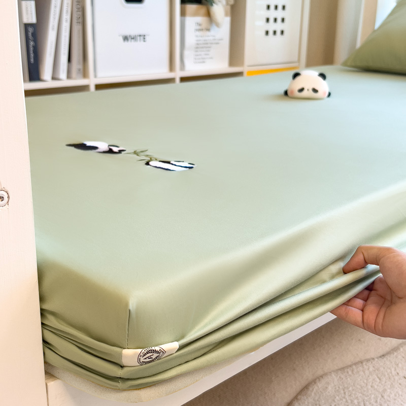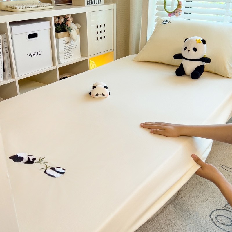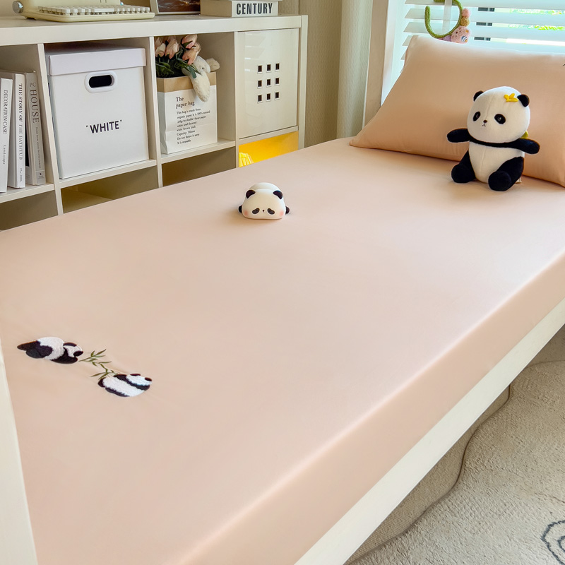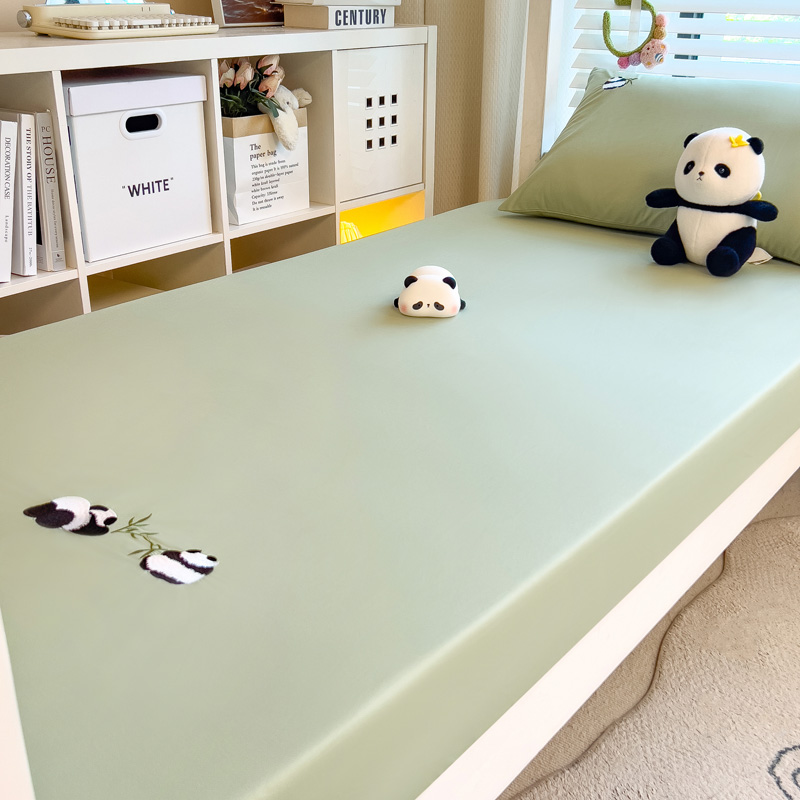 (总)席世家 2025新款40支全棉纯棉绣花学生床笠-熊猫抱竹