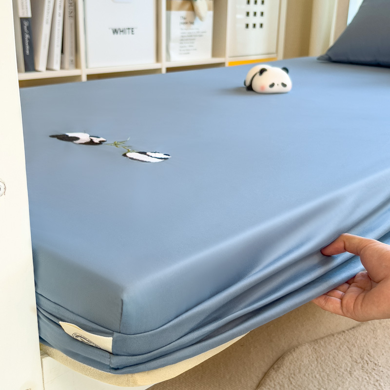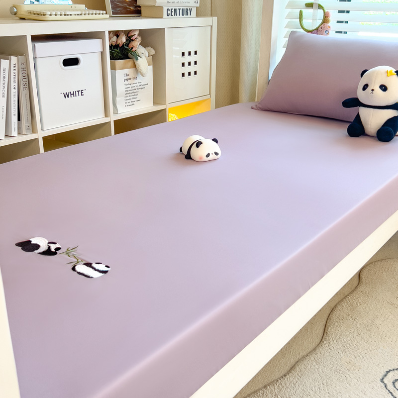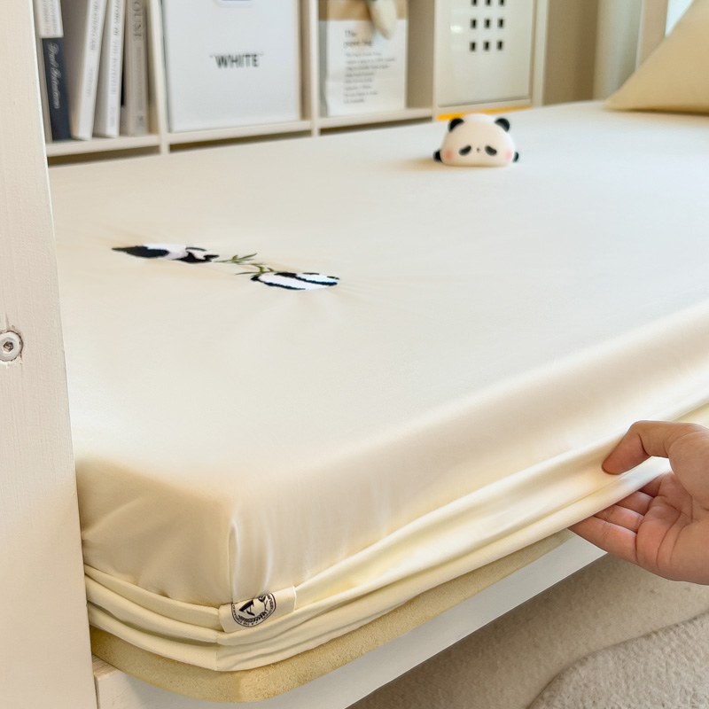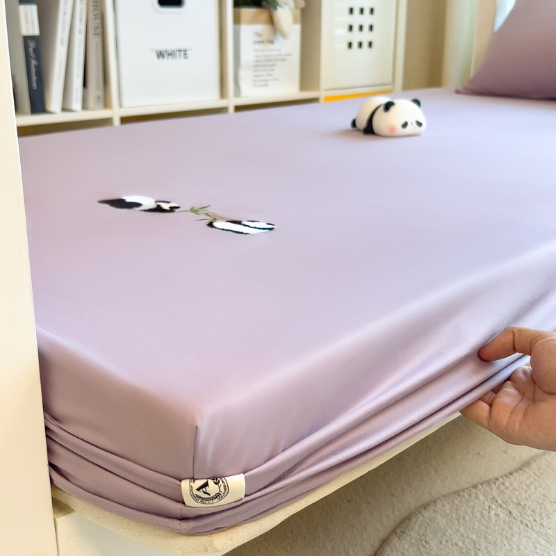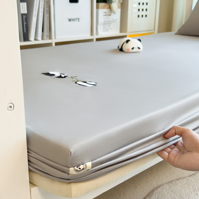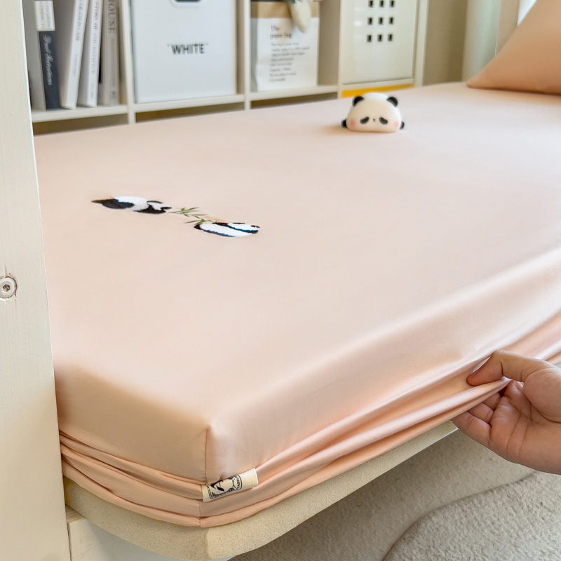 (总)席世家 2025新款40支全棉纯棉绣花学生床笠-熊猫抱竹
