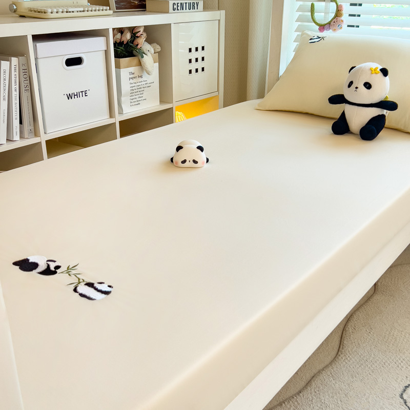 商品名称:(总)席世家 2025新款40支全棉纯棉绣花学生床笠-熊猫抱竹