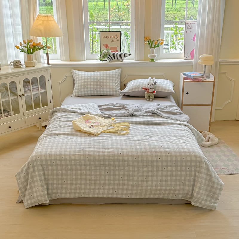 商品名称:玉海棠家纺 2025新款云感双层纱暗合夏被夏凉被空调被四件套 格调灰
