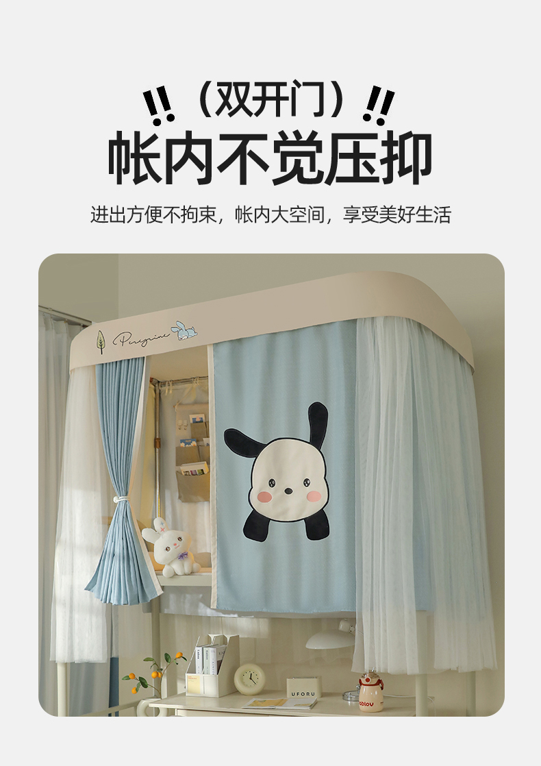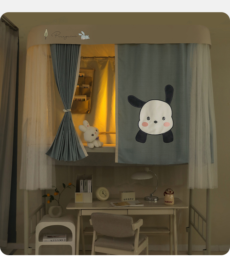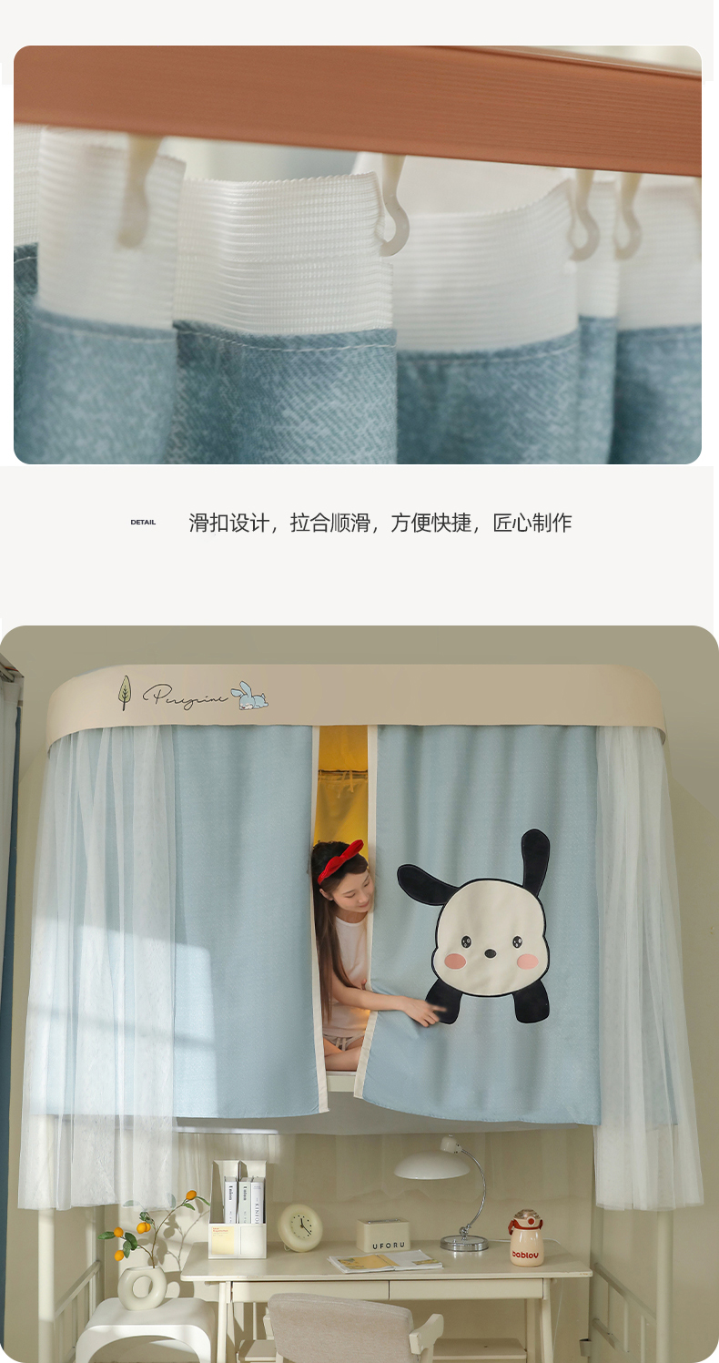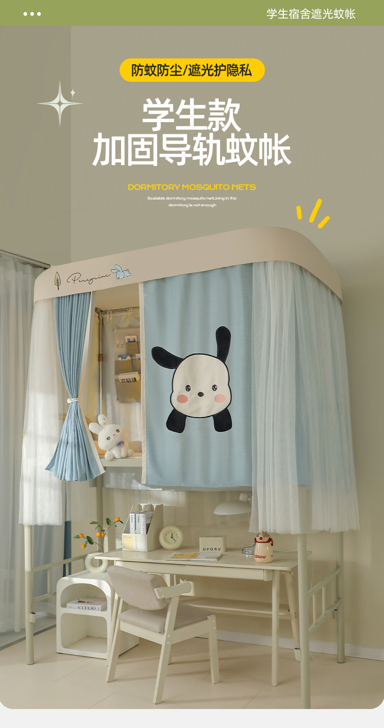 商品名称:都市缘蚊帐 2025新款学生宿舍导轨遮光床帘上下铺贴布卡通蚊帐0.8m 0.9m床 呆萌狗-墨绿