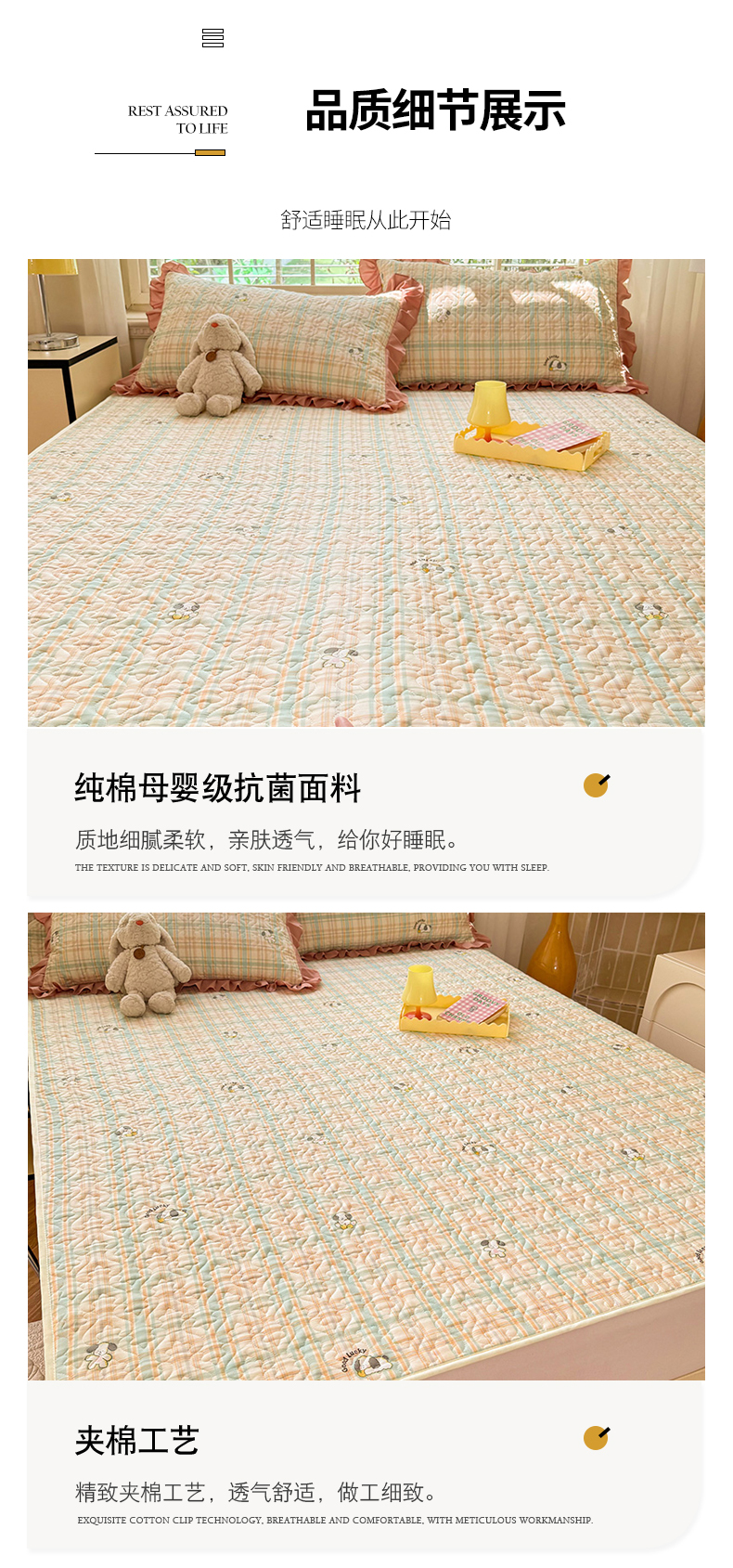 (总)美达家纺 2025新款A类全棉夹棉防水床垫儿童隔尿垫婴儿床防水防滑姨妈护理垫【可定制】,爱心小猫,卡其小熊,快乐小马,小飞象,小町的家