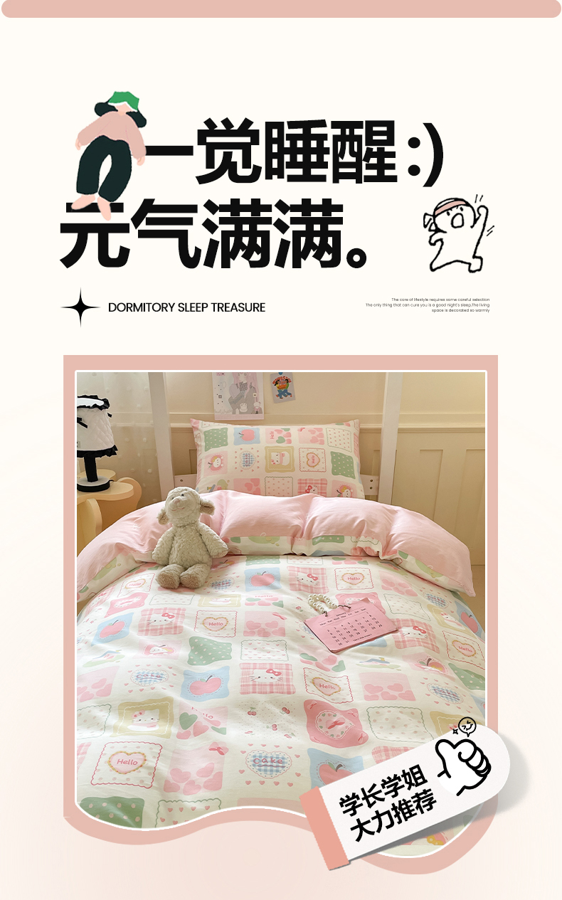 当前位置: 91家纺网 > 商品网购 > 床品套件 > 三件套 > 吉象家纺 2025新款12868高支密全棉印花学生季三件套 粉色猫咪