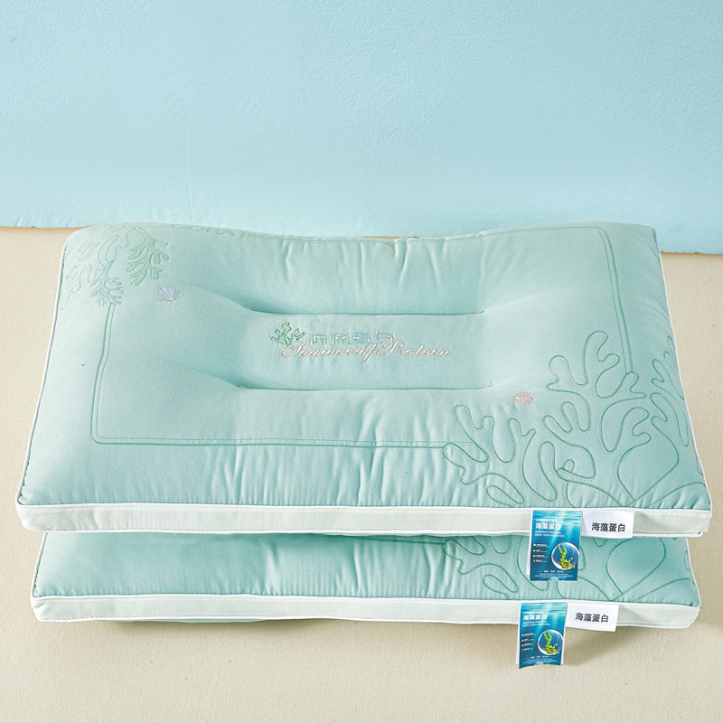 商品名称:轩琪家纺 2025新款刺绣海藻蛋白枕头枕芯 绿色 900克