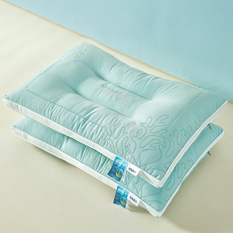 轩琪家纺 2025新款刺绣海藻蛋白枕头枕芯 绿色 900克