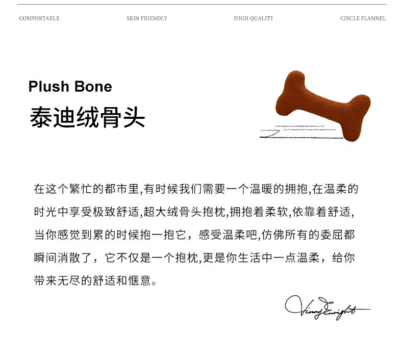 商品名称:沐沐家纺 2026新款亲肤舒适泰迪绒骨头抱枕 泰迪棕