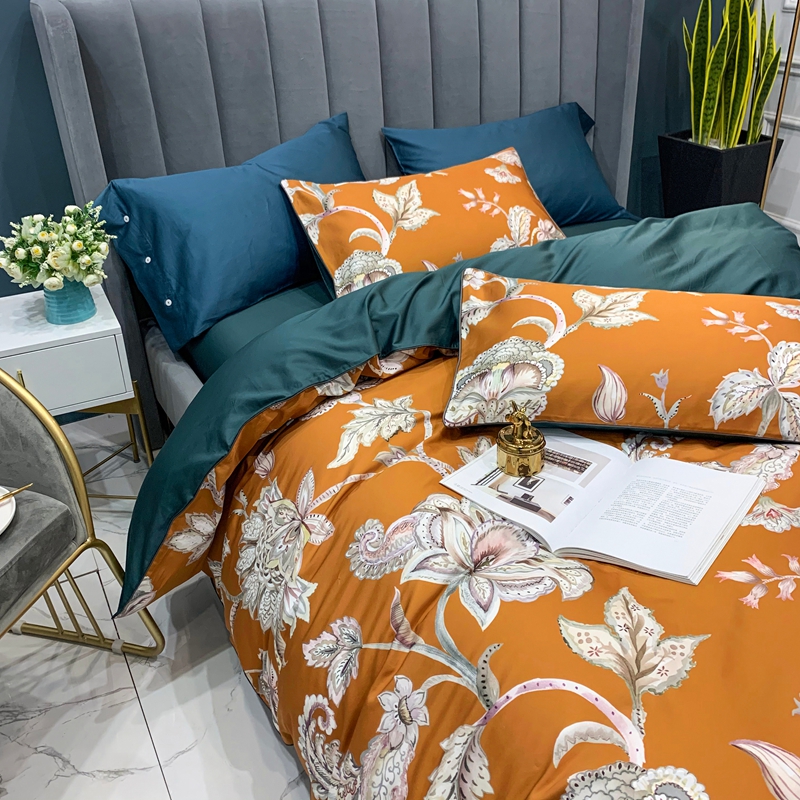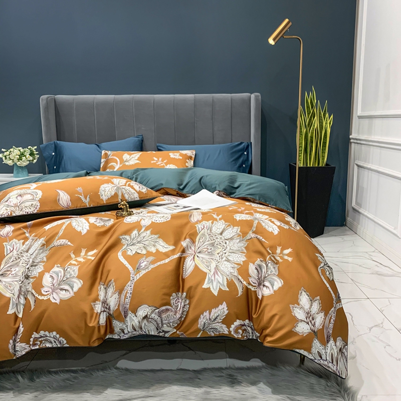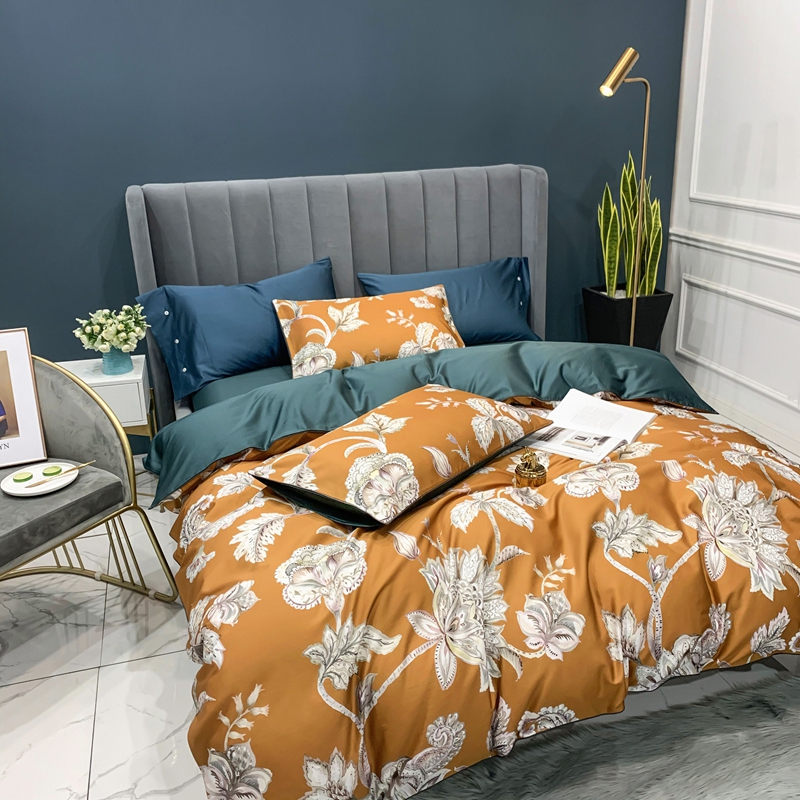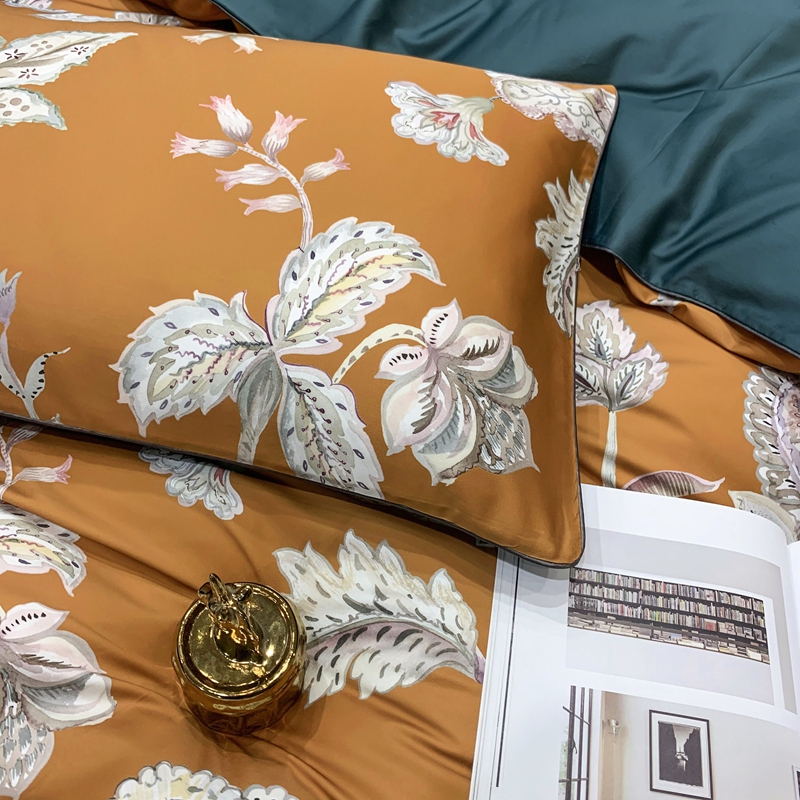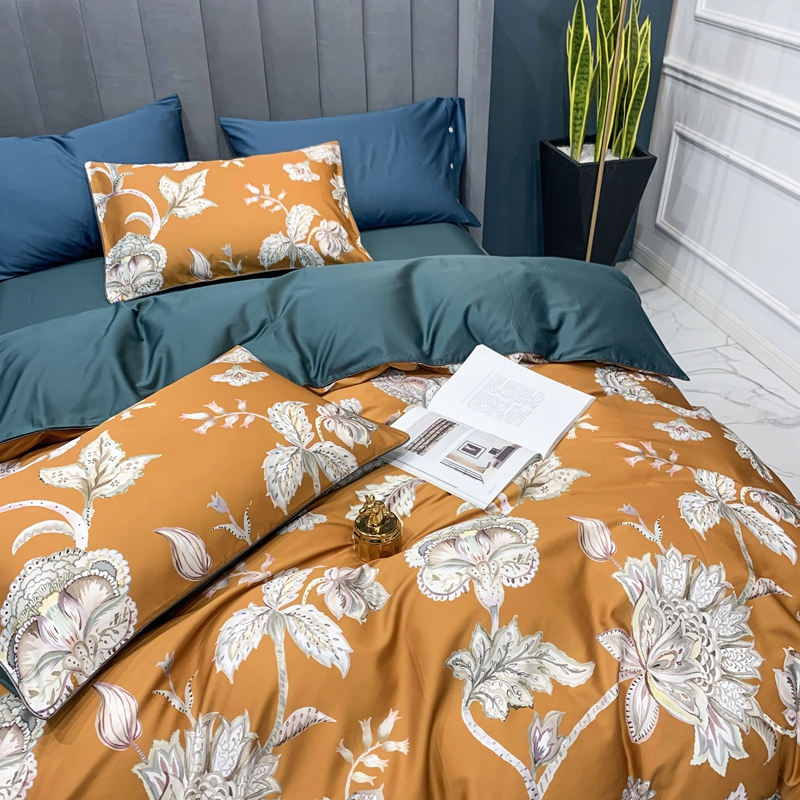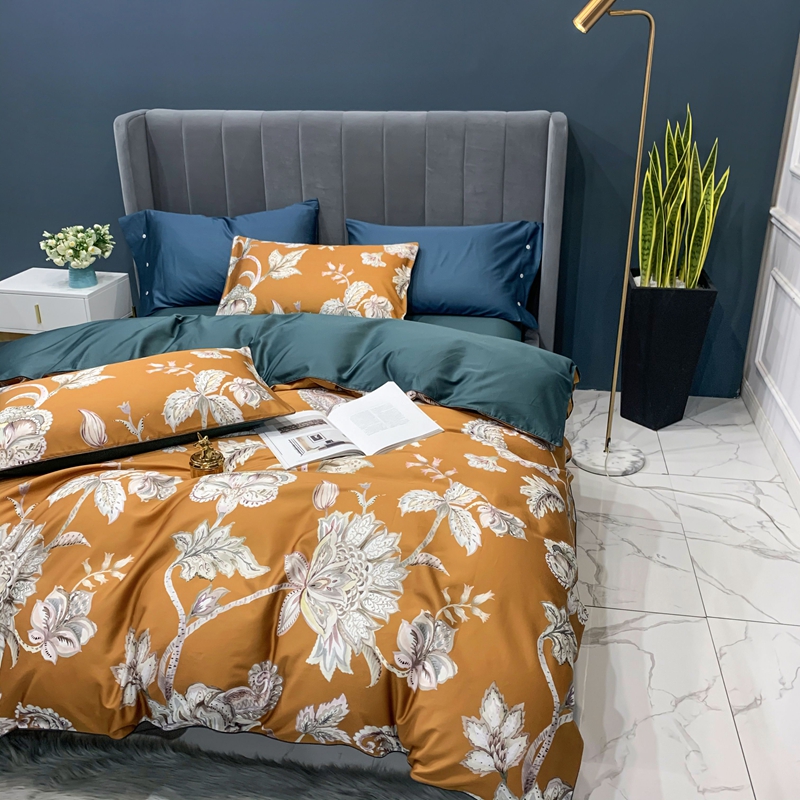 (总)优然居2020新款100支婴儿暖绒棉轻奢风刺绣四件套,大地黄加藏青,复古咖青,轻奢粉灰,霜绿大地色,霜绿复古色