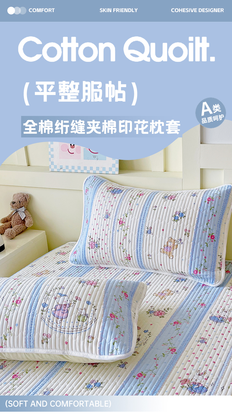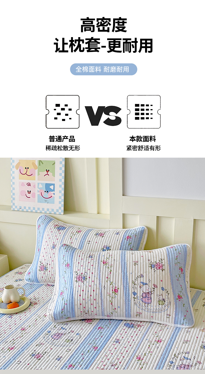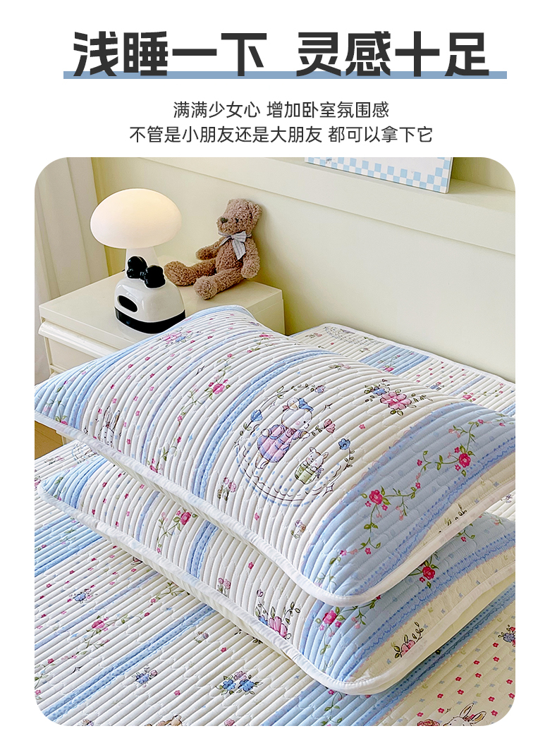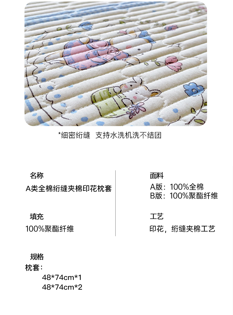 商品名称:金鑫汇家纺 2025新款A类全绗缝夹棉印花枕套 快乐萌兔