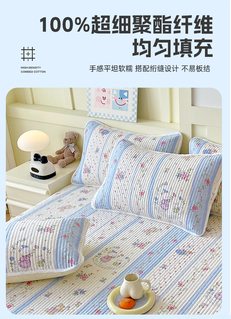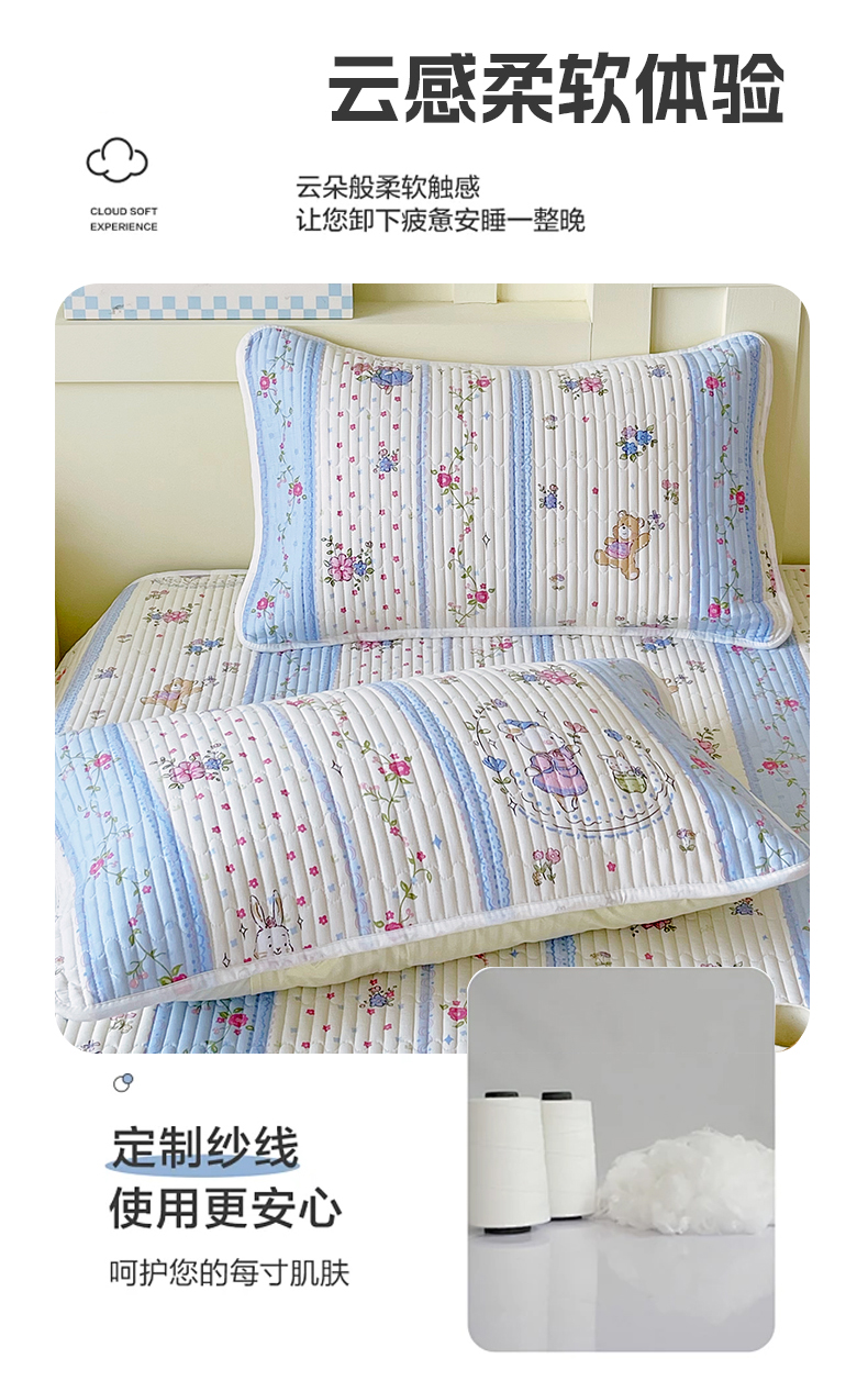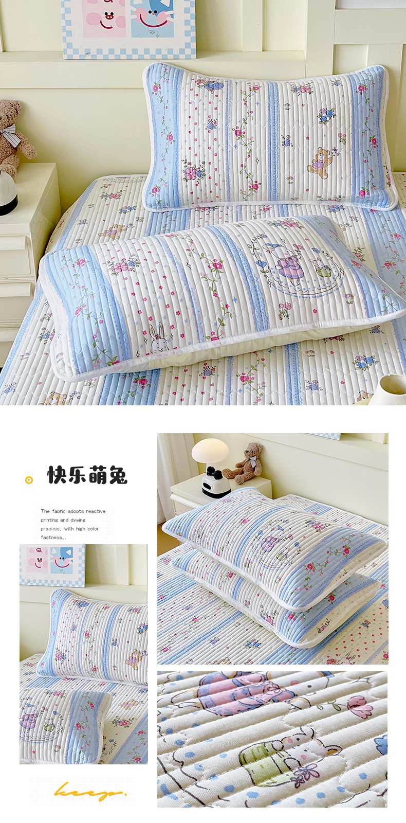 商品名称:金鑫汇家纺 2025新款A类全绗缝夹棉印花枕套 快乐萌兔